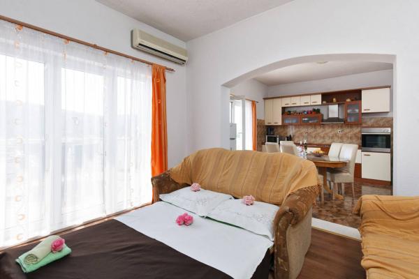 Complet echipate și apartamente moderne într-o parte liniștită a orașului mic de Marina aproape de Trogir vă oferă tot ce ai nevoie pentru vacanta ta. Proprietatea este situată la 7 minute de mers pe jos de plaja, 150m de centrul orașului și 40m de la magazin. Pentru a Trogir ai doar 10 km, iar Split, Sibenik și 30 km.