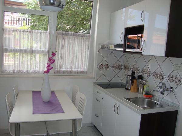 Super apartament studio mobilat, are tot ce ai nevoie într-adevăr pentru o vacanță perfectă cu familia. Terasa frumoasa, mereu la umbră. Proprietarii sunt întotdeauna disponibile, într-adevăr mă simt o atmosferă de familie confortabilă. Ne-au oferit, așa că ne-am simtit confortabil maxim si super. ne-au pregătit masa de prânz savrešen (încă o dată, multe mulțumiri pentru asta). Tot ceea ce în imagini, sunteți proprietarul a făcut efortul și mai în detaliu noi toți objasio. Foarte curat și bine întreținute, curățenia este de 10 :) Serviciul gazda fantastic. Categoric recomandat pentru familiile cu copii. Totul este aproape, oraș, plajă, loc de joaca. Si cel mai important, mulțimile de pe plajă, astfel încât nu există nici o împingere. Prețurile de produse alimentare și băuturi în oraș, pe plaja sunt destul de reale, și nu umflate. Marina este vacanta perfecta pentru persoanele care au nevoie de pace și o vacanță de familie frumos. Proximitatea orașelor mari, dar poate fi ușor și o mulțime de a vedea.