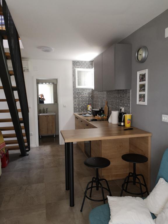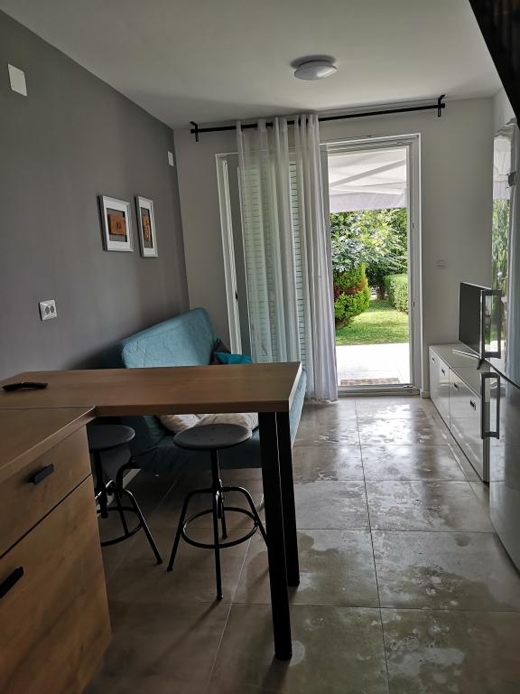 Casa de pe plajă, cu o grădină mare și loc de parcare, ideale pentru familiile cu copii. Nu vă faceți griji dacă ați uitat ceva sau sunteți obosit de plajă, lângă tine la mare și vă puteți bucura de soare sau la umbră la care vă convine. Casa de vacanță este situat în inima unui mic sat de pescuit în apropierea Poljica Marina și Trogir. Casa are o bucatarie, sala de mese, baie la parter, ceea ce duce la terasa cu mobilier de grădină. La etaj sunt două dormitoare cu șase paturi și o toaletă. Casa este complet echipat pentru vacanță cât mai plăcută.
