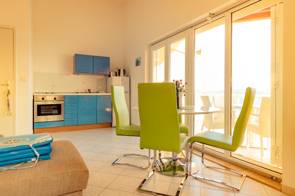 Vila Mandolina este situată chiar deasupra plajei, la marginea unui golf liniștit, iar toate apartamentele au o terasă cu o vedere frumoasă la mare și la insulele din apropiere. Fiecare are o bucătărie modern utilată, baie, internet WIFI gratuit, SAT-TV, aer condiționat, duș, prosoape și lenjerie de pat, living cu canapea extensibilă și sufragerie. Vila are trei sau patru tipuri de apartamente, iar prețurile variază și în funcție de dimensiunea și locația în vilă. Ca oaspete al nostru, utilizați frumoasa plajă (grătar pe plajă și la vilă, două șezlonguri gratuite per apartament până la sfârșitul sejurului în vilă, umbrele, duș pe plajă) și parcarea cu supraveghere video, toate gratuite!! Plaja poate fi accesată pe scări direct de la vilă.