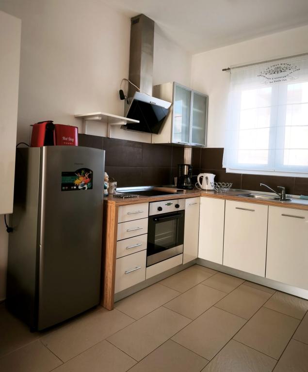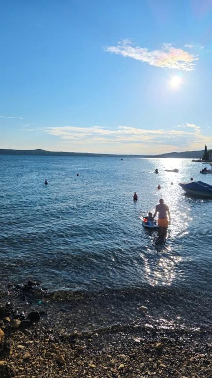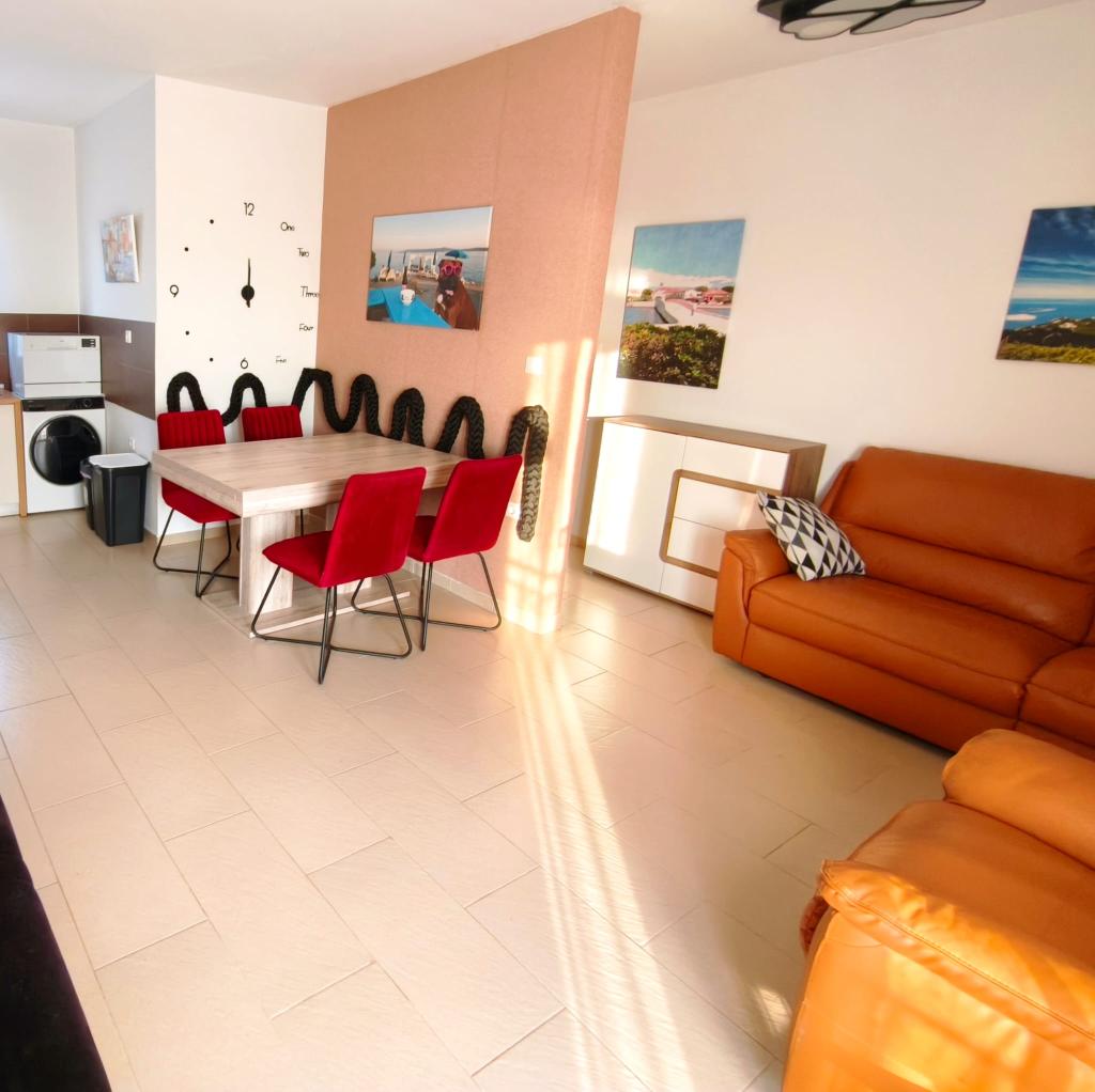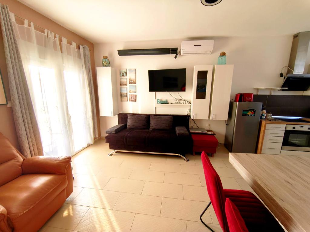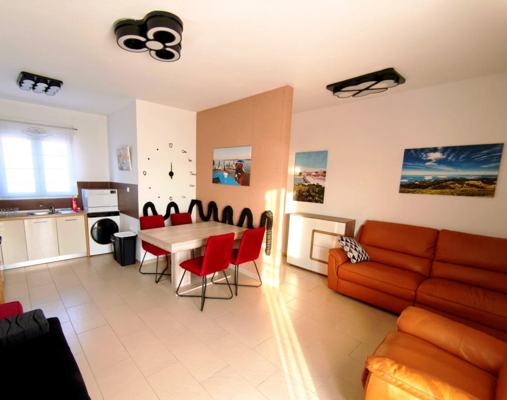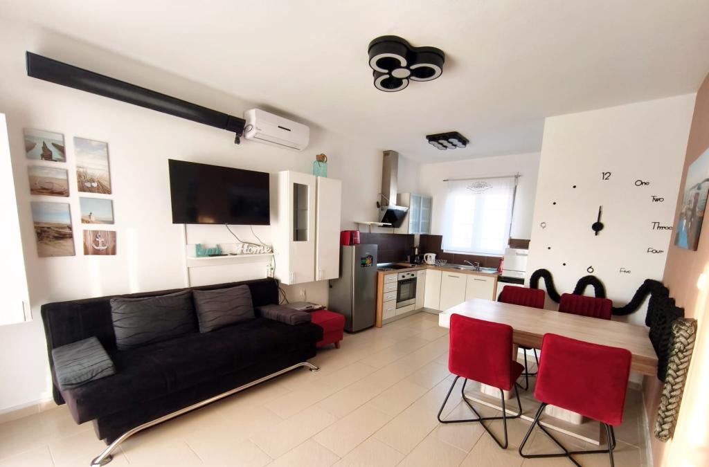 Apartament complet mobilat, situat la parter. Este format dintr-un dormitor cu pat dublu, o bucătărie cu sufragerie, o toaletă și un living cu două canapele, dintre care una poate fi transformată în pat suplimentar. Există, de asemenea, posibilitatea de a găzdui animale de companie contra cost și avem un loc de acostare/geamandură pe care oaspeții noștri îl pot folosi pentru a acosta ambarcațiunile lor mai mici.