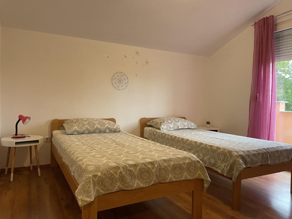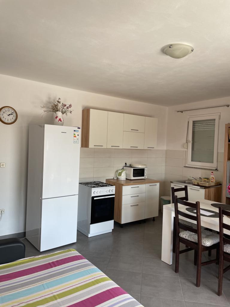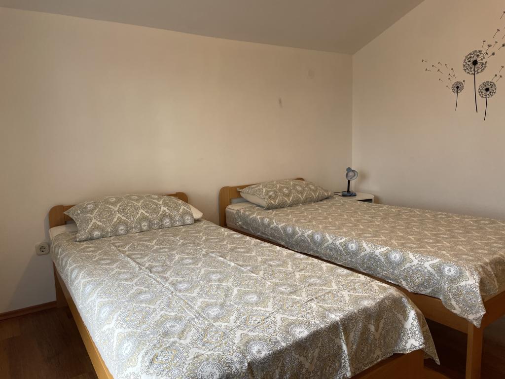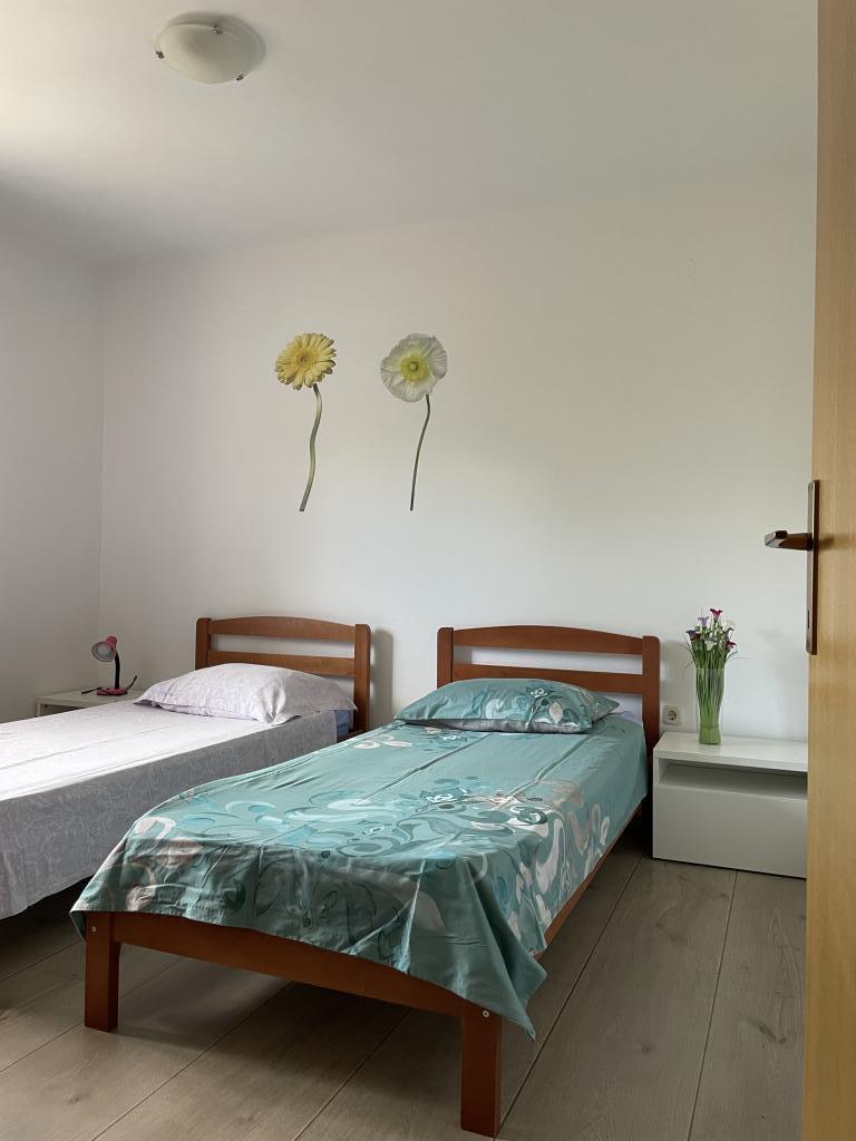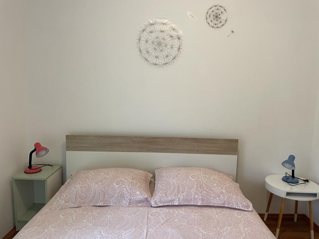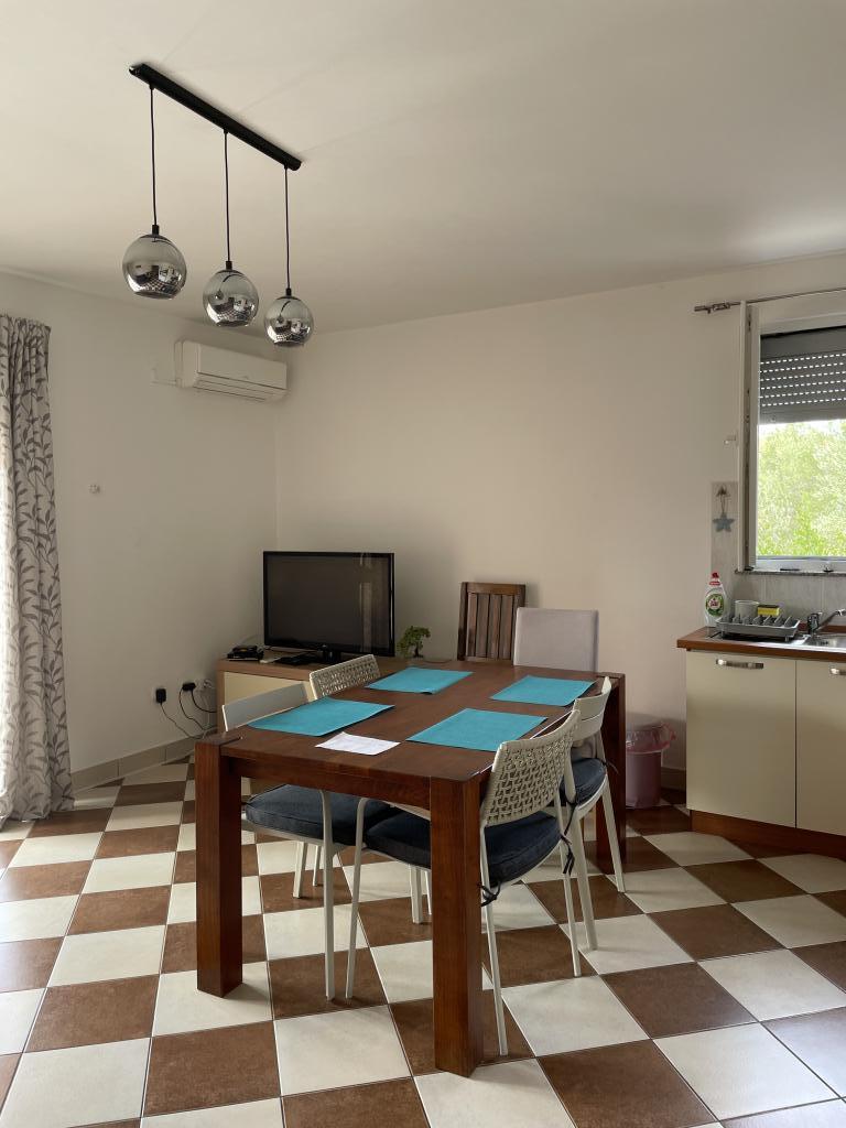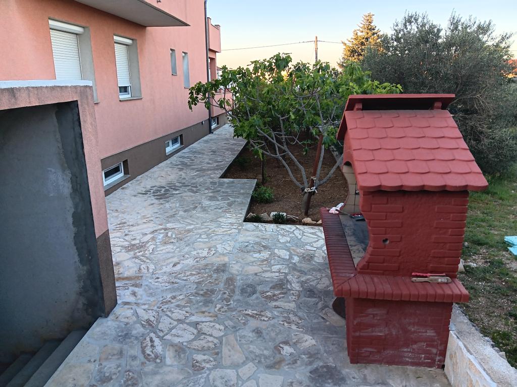 Casă de vacanță de 60 m2, plus o terasa de 31 m2, este situat în centrul orașului Maslenica lângă Zadar pe un teren de 1273 m2, departe de plaja 5 minute de mers. Proprietarii nu locuiesc în casă și oaspeții stau în întreaga clădire. Casa are două dormitoare, baie, living-bucatarie cameră și hol. Terasa are protecție solară. Lenjeria de pat și prosoapele sunt schimbate la fiecare 7 (sapte) zile pentru sejururi mai mult de 7 (șapte) zile. Bucătăria este echipată cu toate echipamentele necesare si materiale Veselă și de luat masa. Casa este dotată cu fier și masă de călcat mașină, uscător, uscător de păr, filtru de cafea și ceainic. Utilizarea Internetului, aer condiționat, TV prin satelit, parcare, uscatoare de par si masini de spalat nu sunt naplaćuje.Kuća este situat într-o zonă liniștită Maslenice cu măslini și alți copaci în jurul clădirii. Bine ai venit!