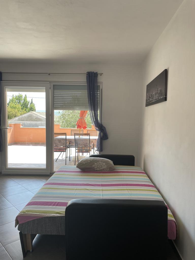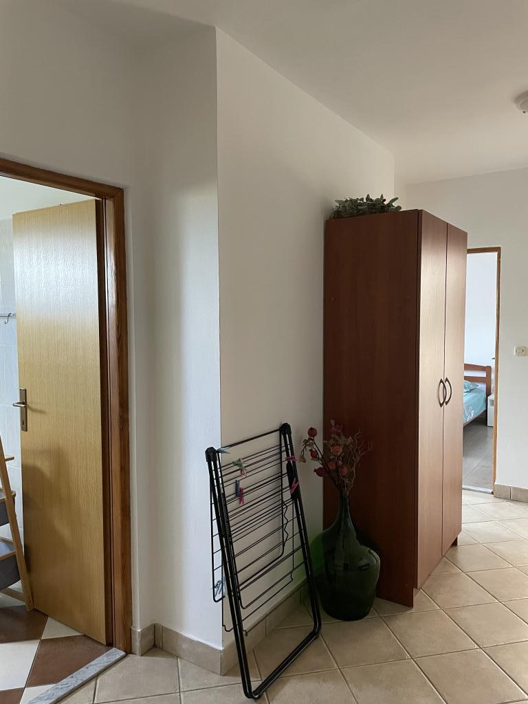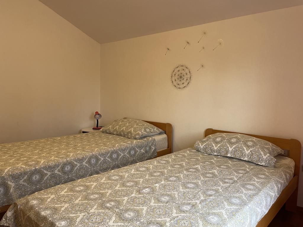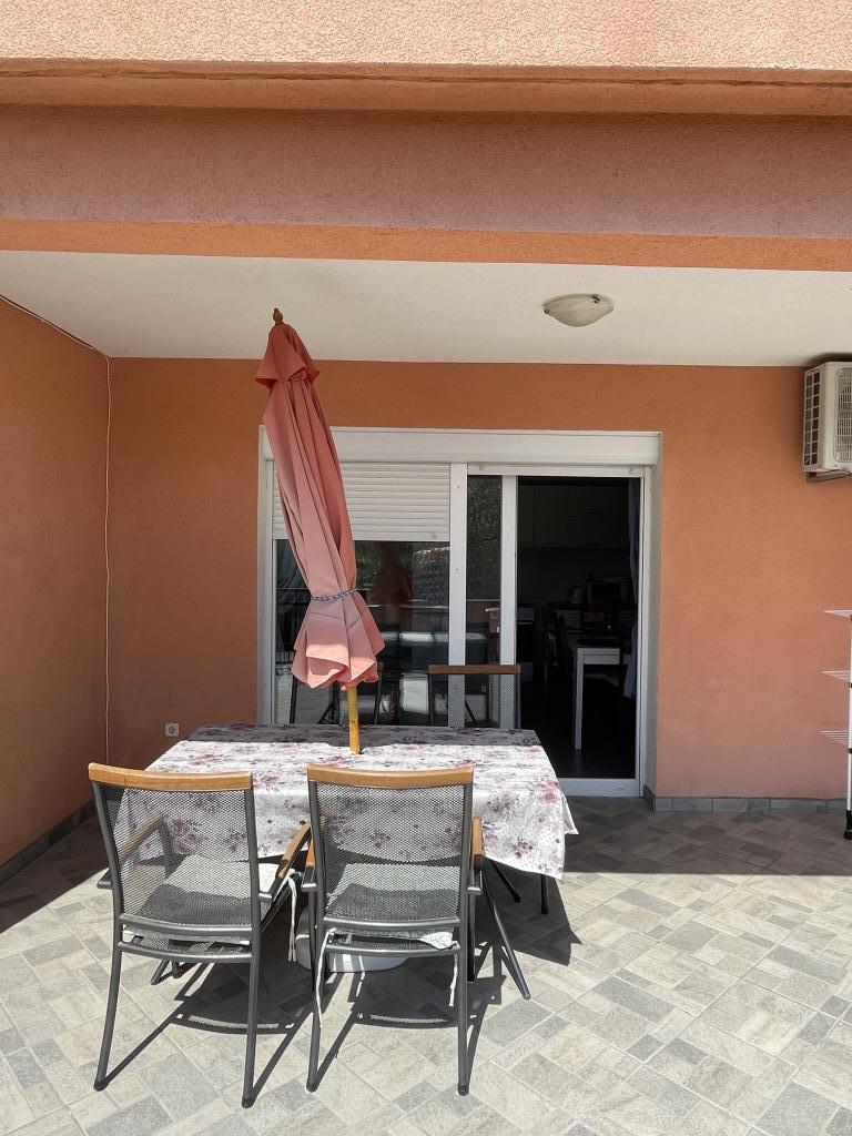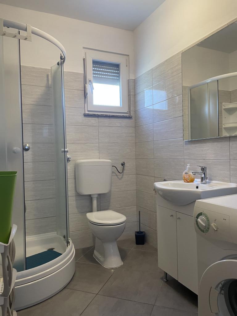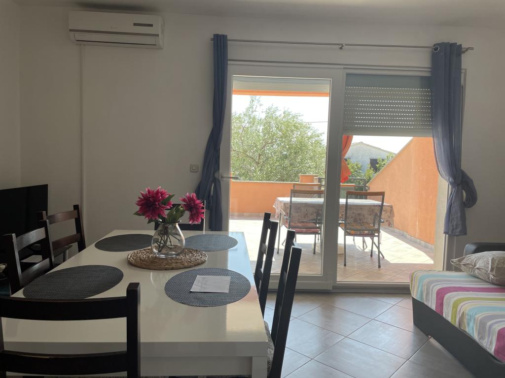 Casă de vacanță de 60 m2, plus o terasa de 31 m2, este situat în centrul orașului Maslenica lângă Zadar pe un teren de 1273 m2, departe de plaja 5 minute de mers. Proprietarii nu locuiesc în casă și oaspeții stau în întreaga clădire. Casa are două dormitoare, baie, living-bucatarie cameră și hol. Terasa are protecție solară. Lenjeria de pat și prosoapele sunt schimbate la fiecare 7 (sapte) zile pentru sejururi mai mult de 7 (șapte) zile. Bucătăria este echipată cu toate echipamentele necesare si materiale Veselă și de luat masa. Casa este dotată cu fier și masă de călcat mașină, uscător, uscător de păr, filtru de cafea și ceainic. Utilizarea Internetului, aer condiționat, TV prin satelit, parcare, uscatoare de par si masini de spalat nu sunt naplaćuje.Kuća este situat într-o zonă liniștită Maslenice cu măslini și alți copaci în jurul clădirii. Bine ai venit!