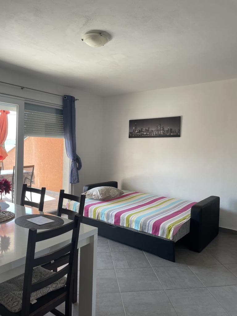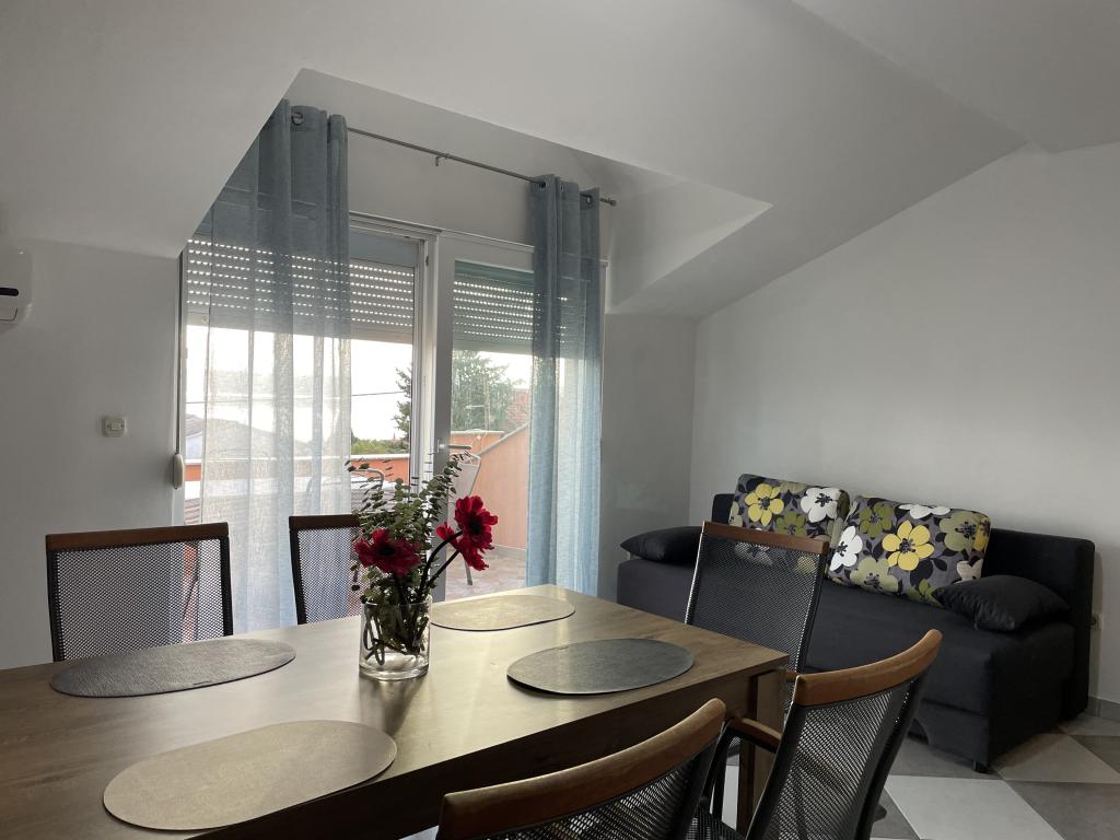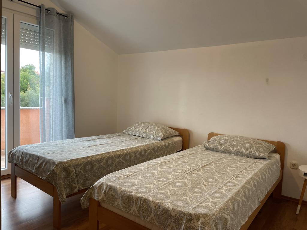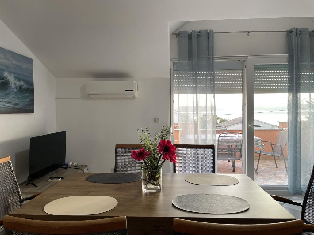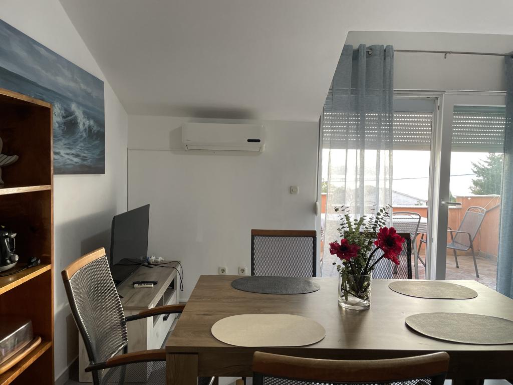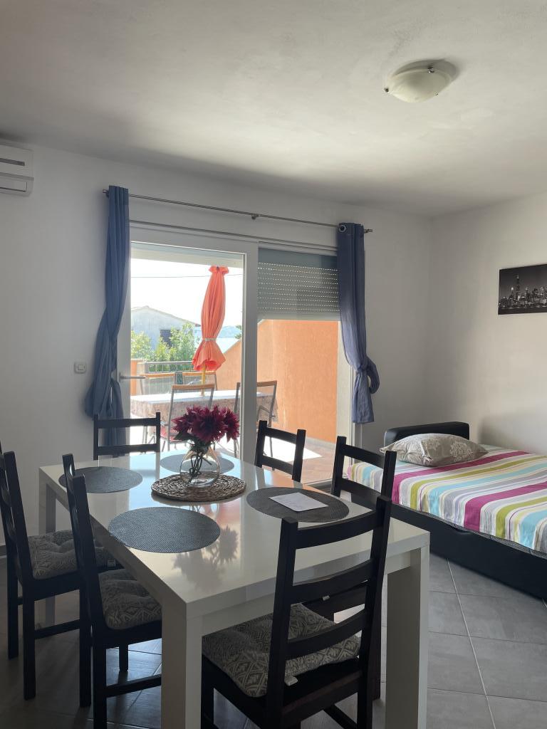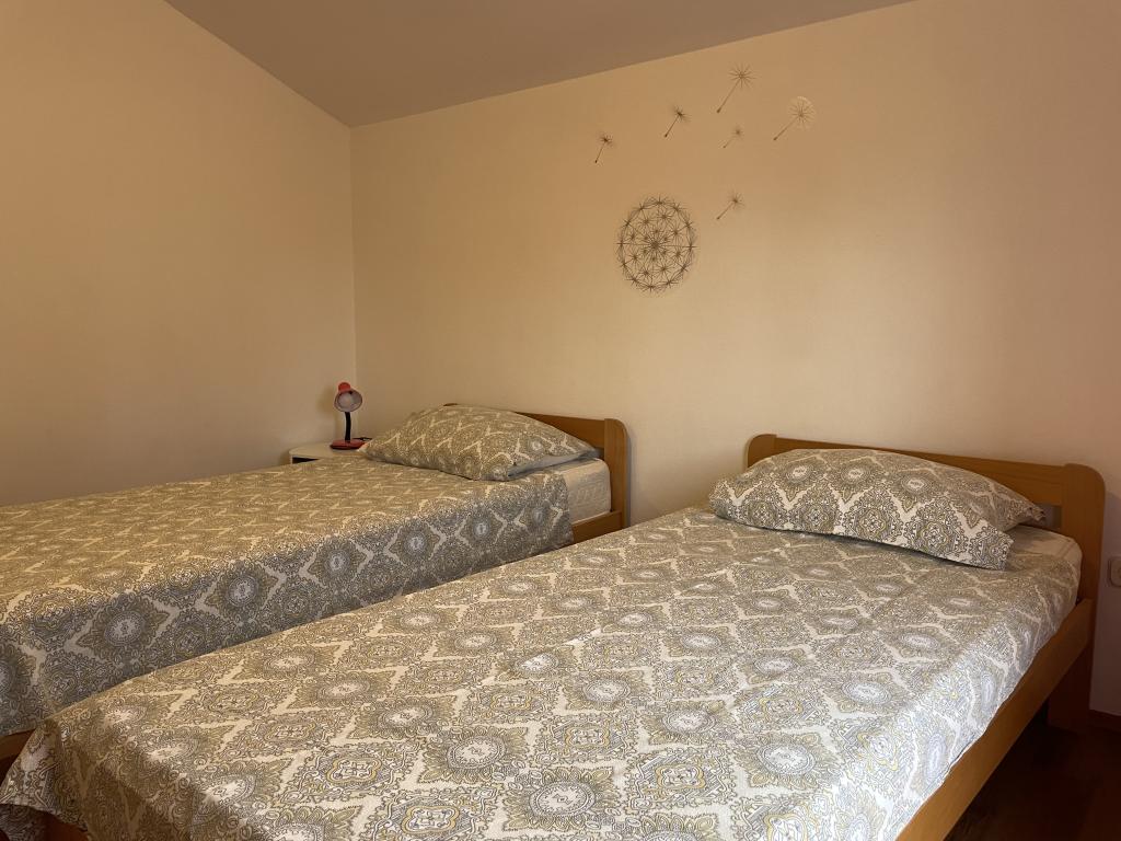 Casă de vacanță de 60 m2, plus o terasa de 31 m2, este situat în centrul orașului Maslenica lângă Zadar pe un teren de 1273 m2, departe de plaja 5 minute de mers. Proprietarii nu locuiesc în casă și oaspeții stau în întreaga clădire. Casa are două dormitoare, baie, living-bucatarie cameră și hol. Terasa are protecție solară. Lenjeria de pat și prosoapele sunt schimbate la fiecare 7 (sapte) zile pentru sejururi mai mult de 7 (șapte) zile. Bucătăria este echipată cu toate echipamentele necesare si materiale Veselă și de luat masa. Casa este dotată cu fier și masă de călcat mașină, uscător, uscător de păr, filtru de cafea și ceainic. Utilizarea Internetului, aer condiționat, TV prin satelit, parcare, uscatoare de par si masini de spalat nu sunt naplaćuje.Kuća este situat într-o zonă liniștită Maslenice cu măslini și alți copaci în jurul clădirii. Bine ai venit!