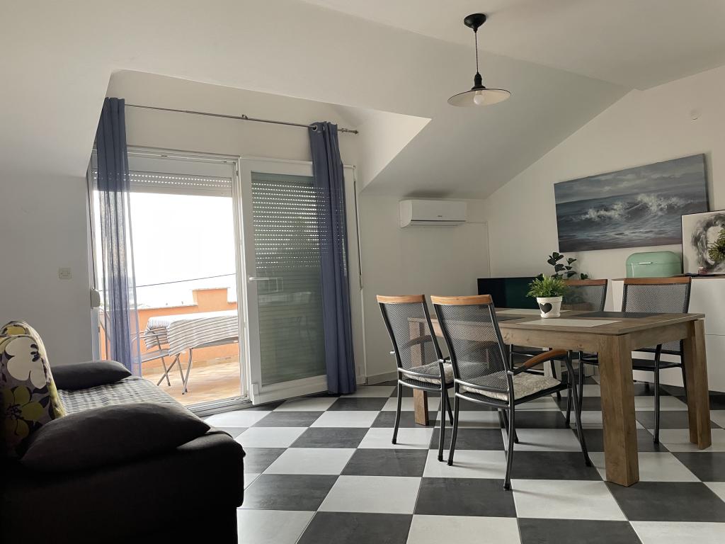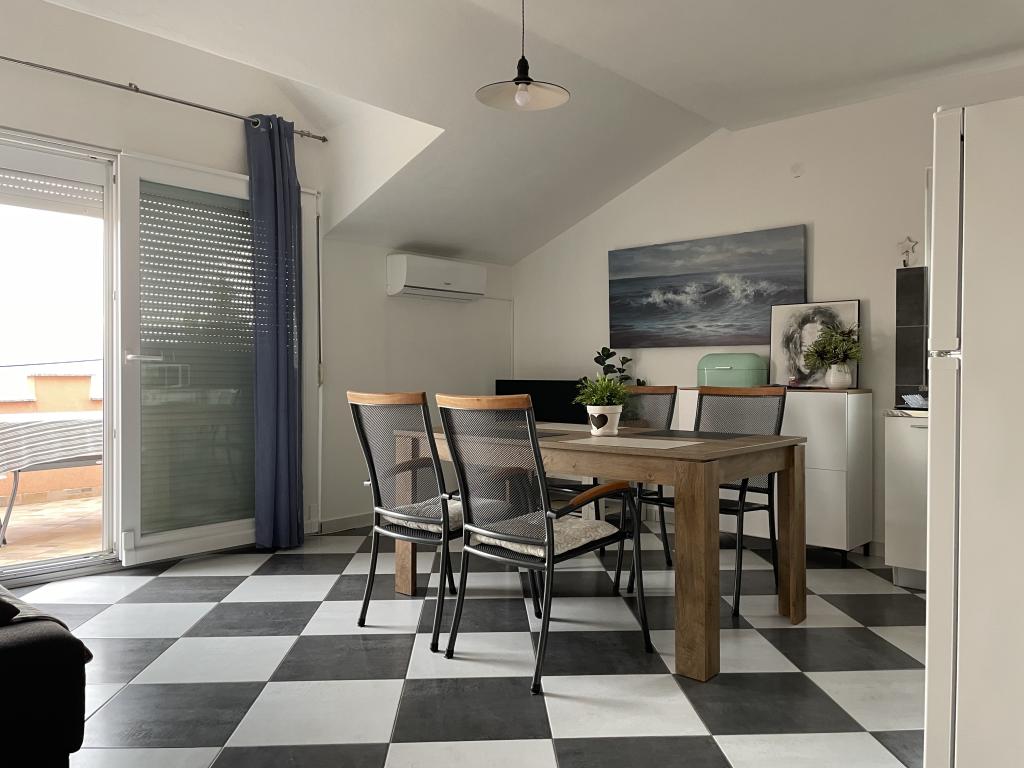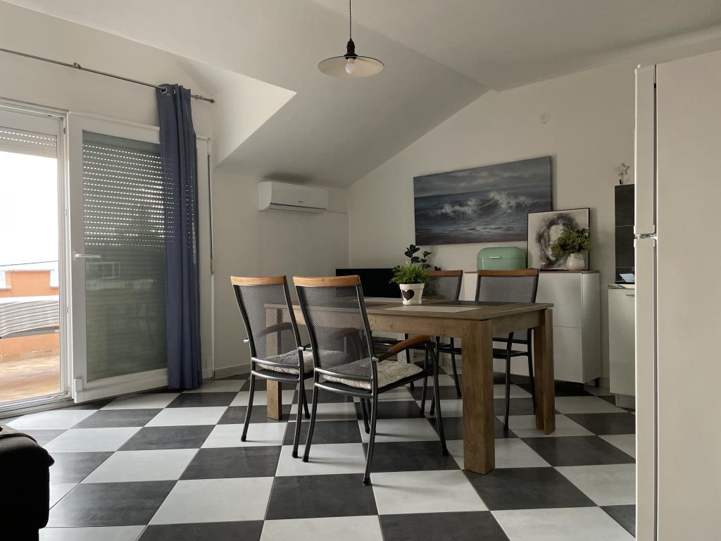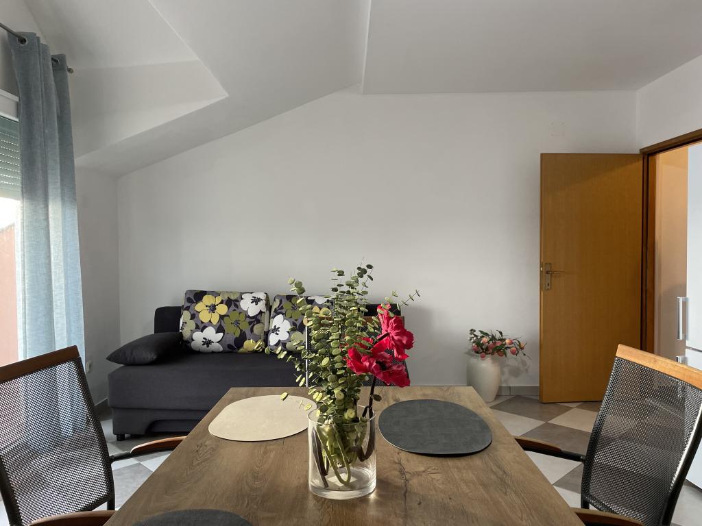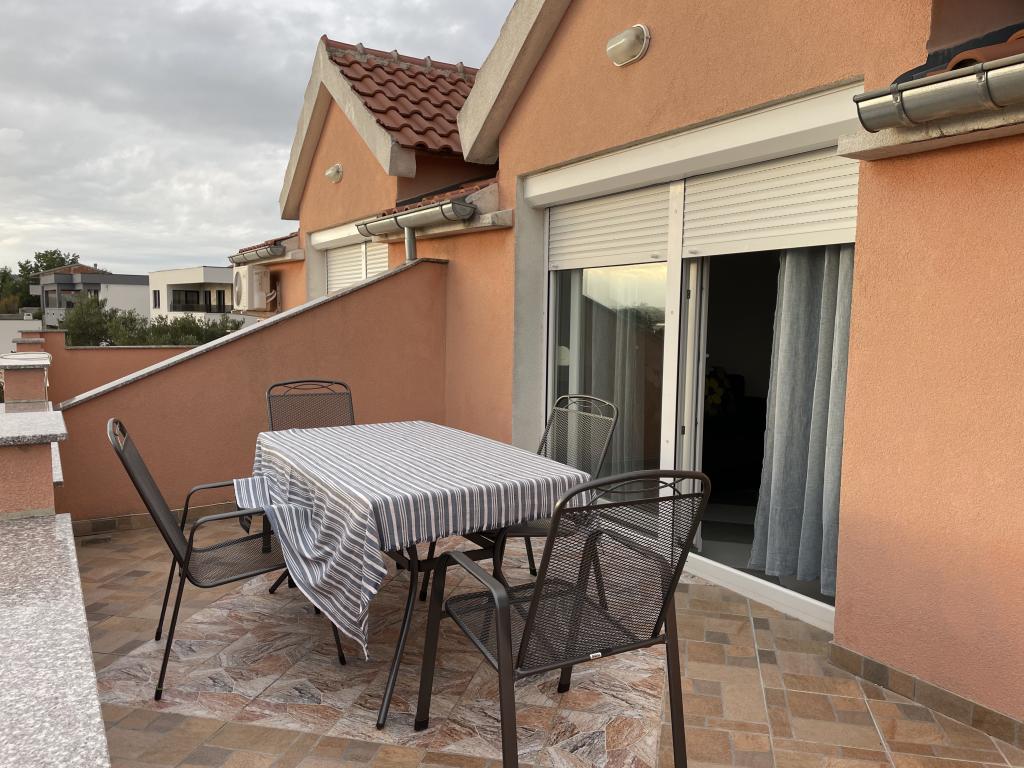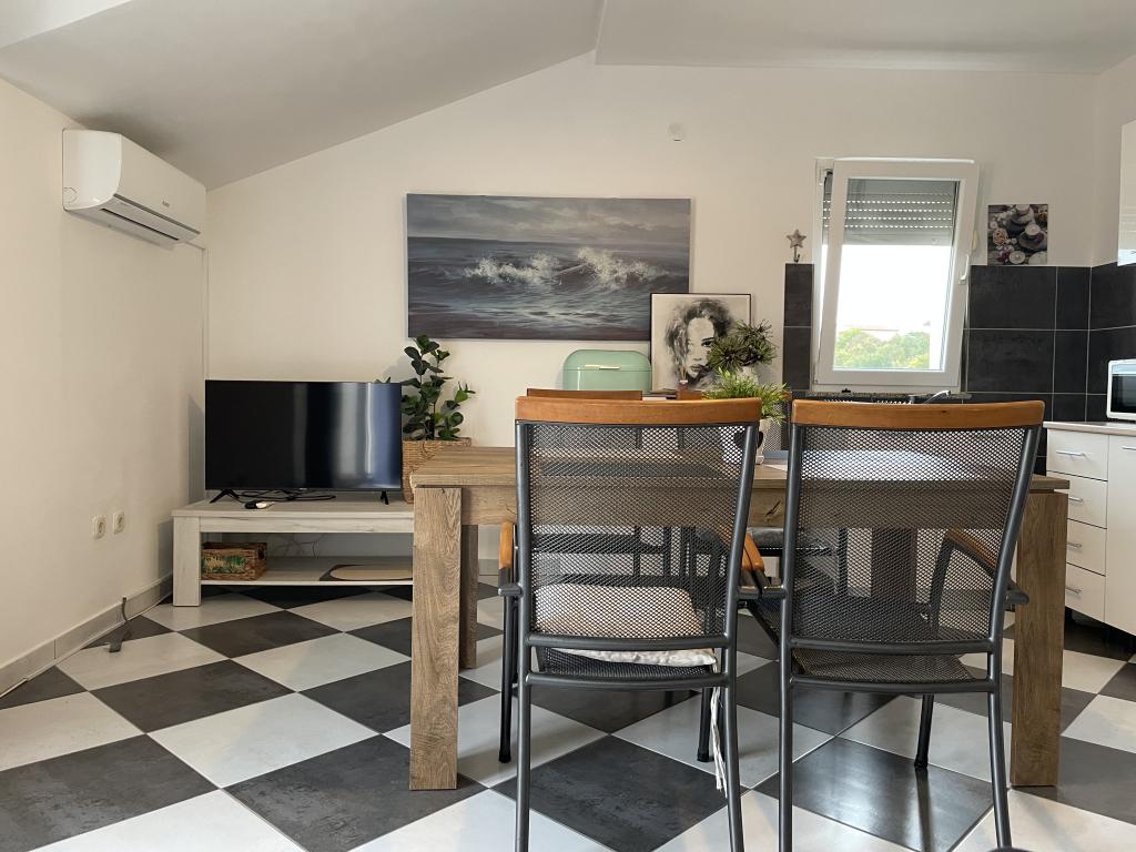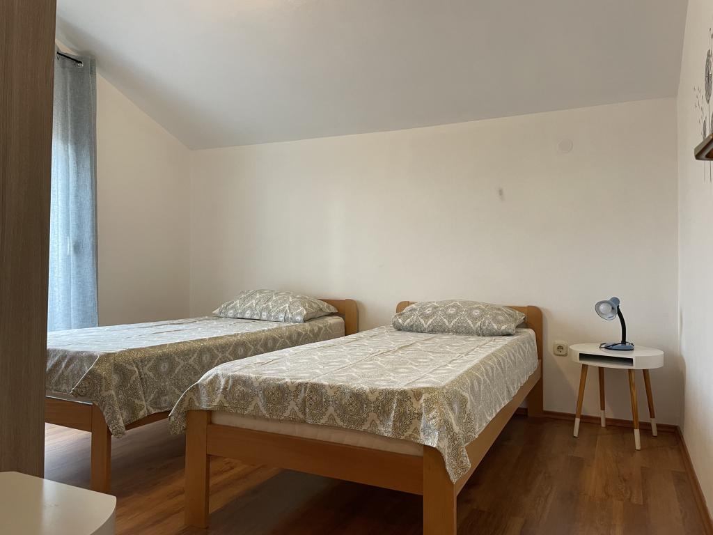 Casă de vacanță de 60 m2, plus o terasa de 31 m2, este situat în centrul orașului Maslenica lângă Zadar pe un teren de 1273 m2, departe de plaja 5 minute de mers. Proprietarii nu locuiesc în casă și oaspeții stau în întreaga clădire. Casa are două dormitoare, baie, living-bucatarie cameră și hol. Terasa are protecție solară. Lenjeria de pat și prosoapele sunt schimbate la fiecare 7 (sapte) zile pentru sejururi mai mult de 7 (șapte) zile. Bucătăria este echipată cu toate echipamentele necesare si materiale Veselă și de luat masa. Casa este dotată cu fier și masă de călcat mașină, uscător, uscător de păr, filtru de cafea și ceainic. Utilizarea Internetului, aer condiționat, TV prin satelit, parcare, uscatoare de par si masini de spalat nu sunt naplaćuje.Kuća este situat într-o zonă liniștită Maslenice cu măslini și alți copaci în jurul clădirii. Bine ai venit!