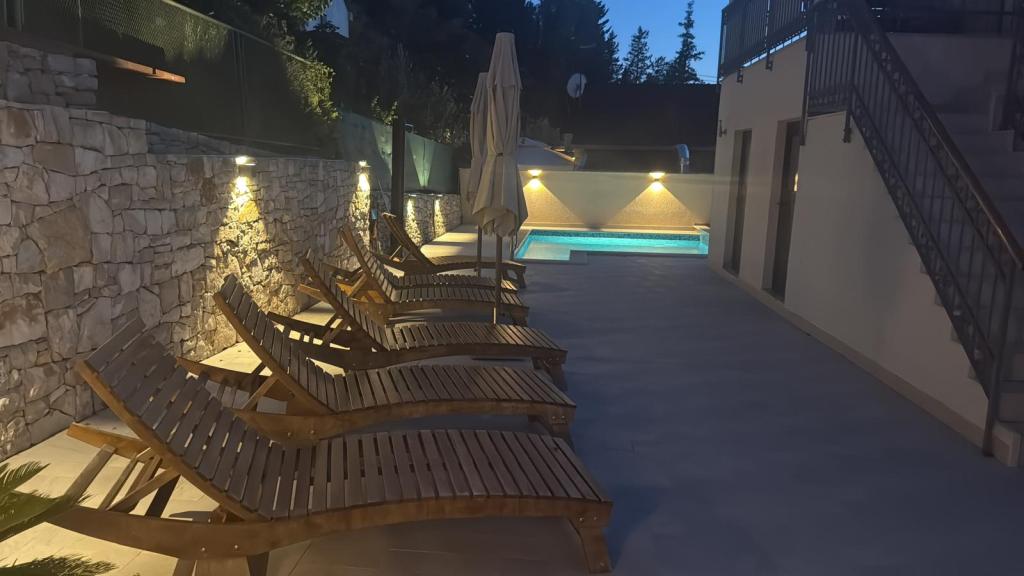 Bine ați venit în spațiosul nostru apartament Wisteria, situat la parter, în liniștitul golf Vlaška. Spre deosebire de majoritatea cazărilor din Milna, puteți ajunge la noi fără urcări sau scări, ceea ce este ideal pentru familiile cu cărucioare sau bicicliști. Bicicletele noastre vă stau, de asemenea, la dispoziție pentru a explora împrejurimile. Apartamentul este decorat cu tavane excepțional de înalte (3 m) și pereți panoramici mari, care oferă o senzație rară de spațiu. Este dotat cu o bucătărie DanKuchen de înaltă calitate și oferă confort complet, cu două toalete, două bideuri, o cadă și un duș. Bucurați-vă de grădina noastră mediteraneană cu un grătar tradițional dalmat, un iaz și o glicină luxoasă care împodobește întreaga proprietate primăvara. Pe o rază de 200 m există restaurante (OMO, Bago, Plaža) și cafenele cu o priveliște frumoasă. Pontonul de catamaran este la doar 200 m distanță, de unde puteți vizita cu ușurință Split, Hvar sau Dubrovnik. Parcarea este gratuită. Bucurați-vă de piscina noastră încălzită, care oferă o doză suplimentară de lux și confort în timpul vacanței dumneavoastră.