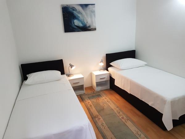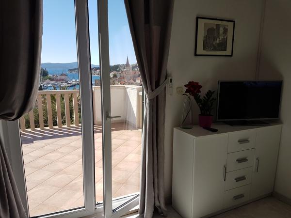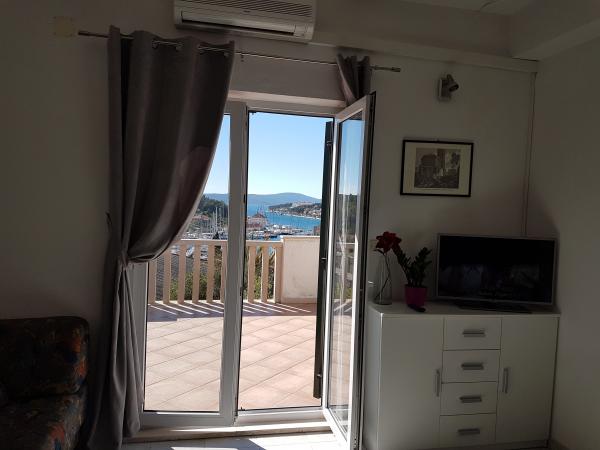Locație excelentă, în apropiere de centru, dar într-un mediu liniștit. Frumoasa priveliste de pe terasa de pe golf și port Milna. Puzo ai o priveliste de neuitat a apus de soare. Apartamentul este mare și curată. Nu este suficient spațiu pentru gătit, pentru că, uneori ei știu unii dintre ei au doar un contor puțin în bucătărie, dar nu a fost suficient. Un frigider mare, aragaz cu cuptor, chiar ROR. Există destule vase. Serviciul a fost minunat, de asemenea, pe terasa în sine. Catering sunt foarte prietenos și iubesc dacă aveți orice întrebare sau problemă. În imediata apropiere a plajei, dar vă sugerez să fac o baie în frumosul golf de Osibova, asta e numai bun 5 minute. automate, puteți, de asemenea biciclete. Cei care iubesc biciklirati au suficiente drumuri pietruite pentru concediul. Seara puteți merge în ziua de baruri, unde aproape în fiecare noapte muzica live. EVALUAREA MARE