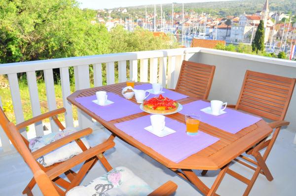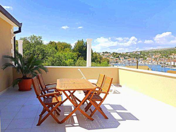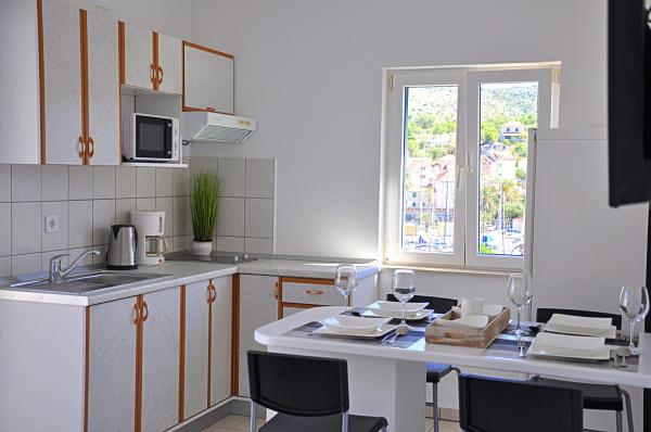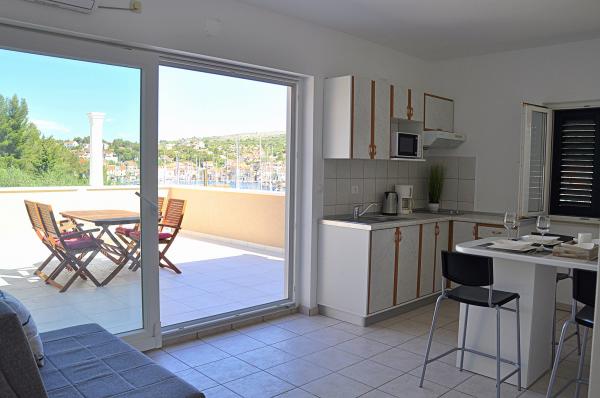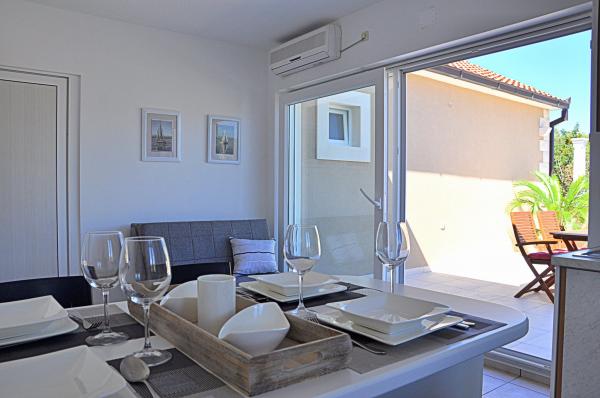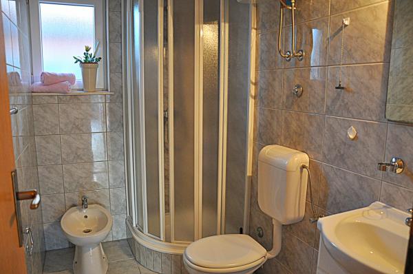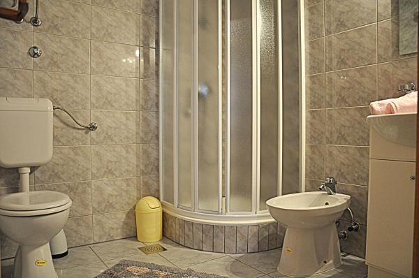 Apartamentele sunt situate într-o casă familială, care este situat într-o locație liniștită și la numai 10 minute de mers pe jos de centru și 15 de cea mai apropiată plajă. Vă oferim două apartamente. A2 (4 1) 60m2 stele conține o bucătărie complet echipată cu o iesire la o terasa mare, cu o vedere frumoasă a golfului. Apartamentul are doua dormitoare, doua bai, care includ uscător de păr și articole de toaletă gratuite. Mașină de spălat, TV, prin satelit, internet și grătar. Noi permitem animale de companie. A1- apartament mobilat nou, cu 4 stele, 80m2, doua dormitoare duble, cu TV LCD, doua bai cu dusuri (uscator de par si accesorii cosmetice personale) cameră de zi spațioasă, cu TV LCD și o canapea extensibilă modernă, bucătărie complet echipată cu mașină de spălat vase și zonă de luat masa. Apartamentul întreg este cu aer condiționat și are încălzire prin pardoseală, cu TV prin satelit și internet Wi-Fi. De asemenea, are o terasă spațioasă, cu vedere panoramică la golf și parcare gratuită și grătar