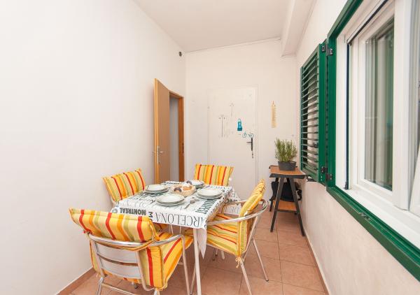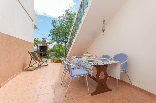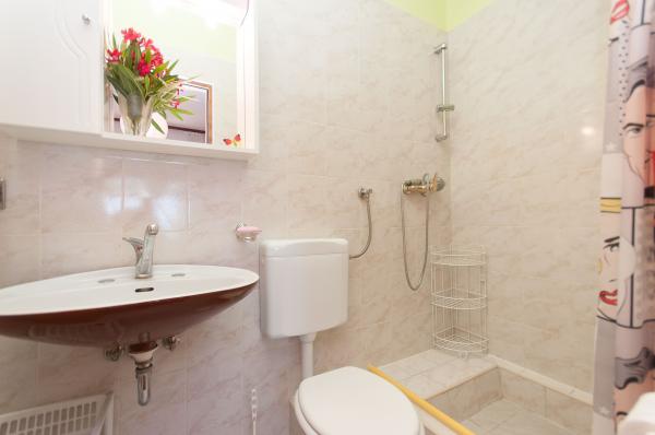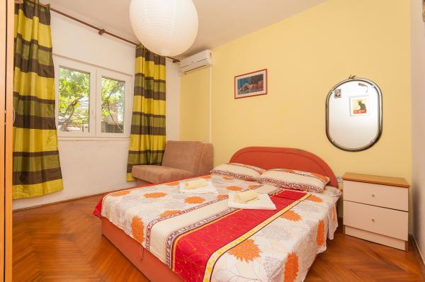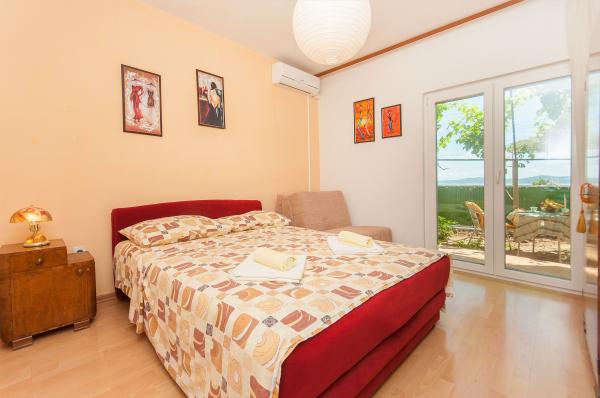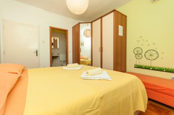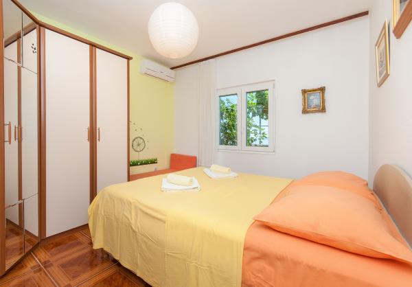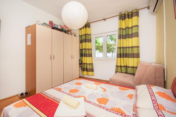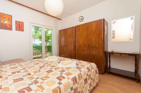 Apartamentele sunt situate într-un sat mic, liniștit, ideal pentru vacanțe de familie și amintiri de neuitat. Apartamentele sunt situate pe partea de sud a casei și au vedere la mare. Distanta de la mare si plaja este de 200 m. Primul apartament 4 2 este format dintr-o toaletă, o bucătărie și două dormitoare, ambele dotate cu aer condiționat. Bucataria este situată în fața casei, astfel încât să nu se încălzească zona în care locuiți. Alt apartament 2 1 este compus dintr-o cameră cu aer condiționat, toaletă și bucătărie, care este, de asemenea, situată în fața casei. Pe latura de sud a casei este o grădină mare, sub o viță de vie, care formeaza o nuanta naturala, cu posibilitatea de gratar. este disponibil pe site-ul de parcare gratuită. Intrarea este comună. Camerele sunt situate în partea de sud a casei, o toaletă pentru un apartament cu 4 2 este situat în întreaga cameră în hol. Wi-Fi este disponibil în întreaga proprietate.