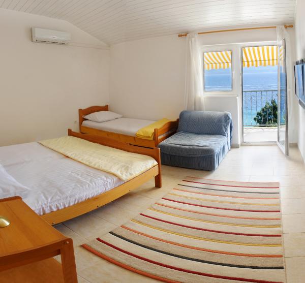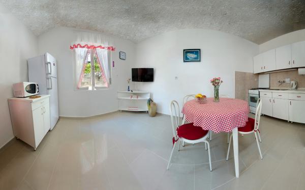 Apartamentele sunt situate într-un golf liniștit, 30m de la plajă. Plaja este mare, pietriș, potrivite pentru copii mici.
