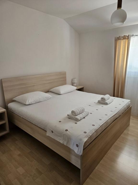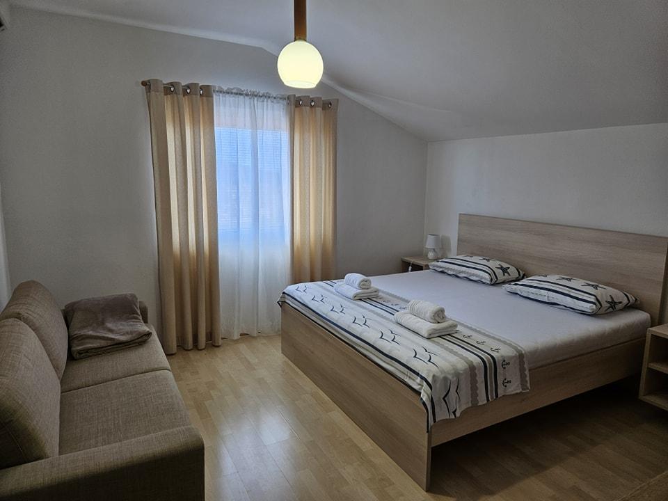 Apartamentul mobilat modern este situat la 600 de metri de plaja cu nisip Slanica, una dintre cele mai frumoase plaje din zonă. Apartamentul are 100 m2, 3 dormitoare, 2 băi, bucătărie cu masă, terasă mare, aer condiționat în fiecare cameră, wi-fi, TV, TV prin satelit, mașină de spălat vase, grătar, parcare păzită pentru 2 mașini, grădină și foișor pentru relaxare. Prețul include lenjerie de pat, prosoape, curățenie finală și taxa de turist.
