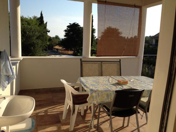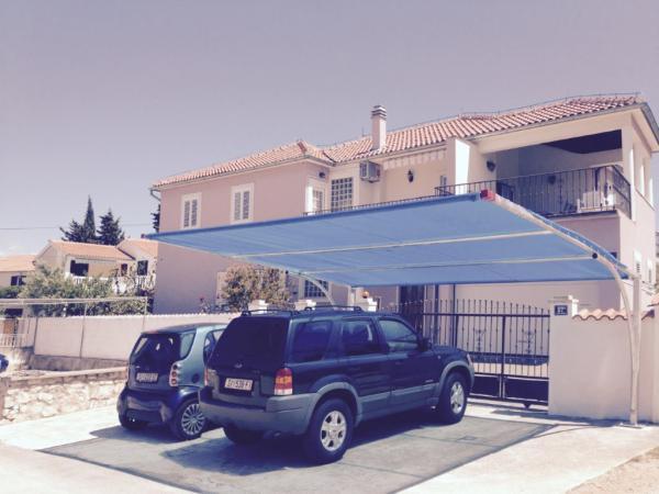 APARTAMENT UNA CAMERA (3 persoane) Apartamentul se afla la etajul 1 al unei case nou construite, la doar 300 de metri de plaja cu nisip din Slanica si la aceeasi distanta de plaja din Luka. Apartamentul are 70 m2 si are propria terasa mare/copertina. Este format dintr-un dormitor mare cu un pat dublu, o baie cu duș, o bucătărie și un living. Apartamentul oferă o vedere minunată spre Murter. Apartamentul este dotat cu aer conditionat si are 1 loc de parcare si internet gratuit. APARTAMENT CU DOUĂ CAMERE (4 1) Apartamentul este la etajul 1, peste 80 m2, are o baie cu duș, o bucătărie și un living. In plus, oaspetii acestui apartament de langa balconul din interiorul apartamentului au posibilitatea de a folosi o terasa mare acoperita de 35 m2 potrivita pentru servirea mesei, plaja, odihna si locuit.