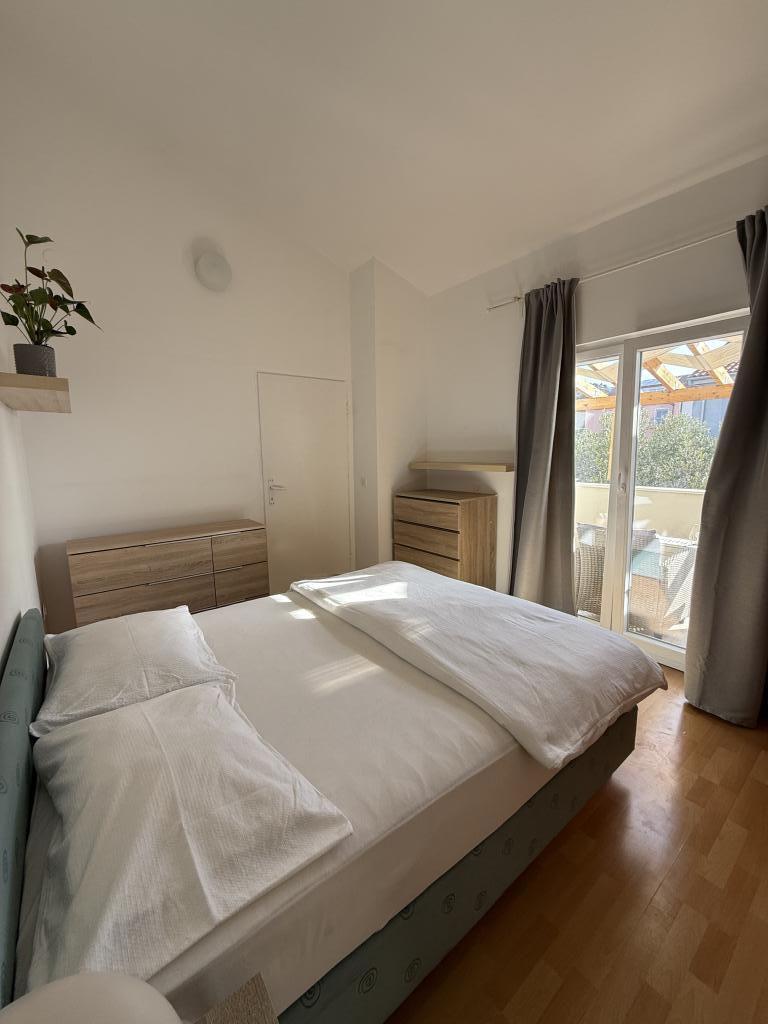 Apartament studio cu terasă de 12m2. Apartamentul este conceput pentru 2 persoane. Pat dublu mare, bucătărie complet utilată, masă, baie. Terasă și masă. Loc de parcare securizat în fața apartamentului pentru un vehicul. Aproape de plajă. Apartamentul se află la 5 minute de mers pe jos de plaja Slanica și la 7 minute de mers pe jos de centrul orașului Murter.