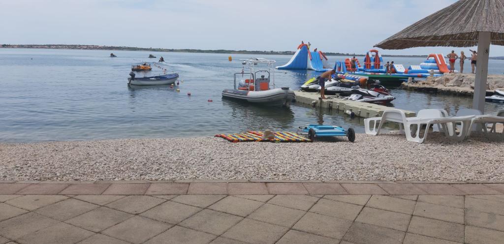 Apartamentul este disponibil pentru închiriere începând cu 25.8.2025 la prețuri accesibile. Apartamentul „Idi pa Vidi” este situat în Vrsi, lângă Nin (la 4 km distanță), în timp ce distanța de Zadar este de 23 km. Din Zagreb se ajunge cu mașina în 2,5 ore. Oferim 2 apartamente cu intrări separate. Municipalitatea Vrsi are 14 plaje, în timp ce cea mai apropiată plajă se află la 320 m de apartament. Plajele din Vrsi sunt în mare parte cu nisip și pietriș (cea mai faimoasă plajă este lângă Ričin). La câțiva pași se află un supermarket, o piață, o brutărie, restaurante, o măcelărie și un parc de distracții. Casa este situată pe o stradă fără ieșire, cu o curte amenajată cu iarbă, iar oaspeții au la dispoziție un duș exterior și un grătar. Apartamentul de la primul etaj are un living cu terasă și vedere la mare și este împărțit pe două niveluri. Primul nivel are 2 dormitoare (unul dintre ele cu pat dublu, iar a doua cameră cu balcon are un pat supraetajat (cu 2 paturi) și o baie, în timp ce al treilea dormitor (care are și o toaletă) este situat la galeria apartamentului. Apartamentul poate găzdui maximum 7 persoane.