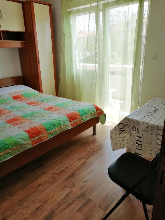 Casa de familie este situată într-o zonă liniștită din Nin, în drum spre plaja Reginei - nămolul din Nin, de care se află la doar 5 minute de mers pe jos. Suitele noastre cu un dormitor sunt dotate cu aer condiționat și sunt dotate cu bucătărie, baie, balcon sau terasă cu vederi frumoase la mare și plajă. Insula (centrul) poate fi accesată pe jos, plimbându-se de-a lungul promenadei de la malul mării, iar toate celelalte facilități sunt în apropiere (restaurante, magazine, oficiu poștal, bancă...).