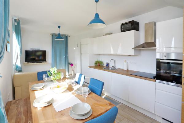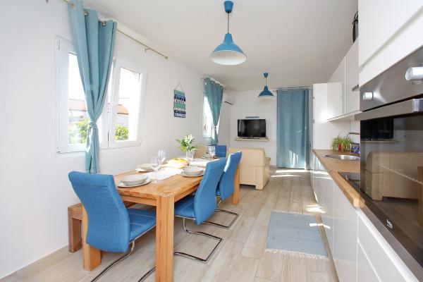 Apartament nou modern echipat, situat într-o zonă liniștită din orașul vechi din Nin, distanța pe mare este de 200 de metri, în timp ce centrul orașului Nin are o plimbare de 4 minute. Apartamentul are 150 m2, într-un mediu liniștit, cu două terase mari, unde vă puteți bucura de soare, precum și de seara liniștită. Apartamentul este spatios, are o bucatarie mare / sufragerie / wc, trei dormitoare luxoase si doua toalete! Plaja cu nisip este la 15 minute de mers pe jos și la 5 minute cu mașina. Apartamentul include aer condiționat, mașină de spălat și parcare în fața apartamentului, toate incluse în preț!