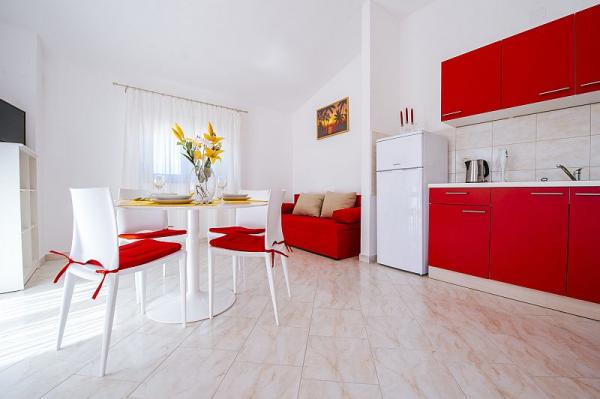 Apartament de lux Maria se află în Zukve-Vrsi, la doar distanță de orașul istoric Nin și aproximativ 25 km de orasul Zadar câțiva kilometri. Situat într-o zonă liniștită, departe de zgomotul și plajă gužve.Pripadajuća este pietricele doar 600 de metri și la o distanță de 700 de metri există o plajă de nisip. Parcare în curte, precum si un gratar care ar putea servi. Această zonă este perfect pentru iubitorii de biciclete, pentru că mulți biciclete stazama.Uz mare este o promenada care se conectează la locul Zukve și Vrsi oferă o vedere frumoasă a apus de soare seara. Pentru iubitorii de adrenalina, în micul oraș de Nin este cunoscută plajă kitesurf cu școala de surfing. Iubitorii de situri istorice se pot bucura de monumente culturale, biserici și vestigii istorice din întreaga regiune, în special micul oraș de Nin. Întregul conținut, supermarket, restaurant, cafenea, birou de turism, oficiu postal, Biserica, etc sunt în mediul de 2-3 km.