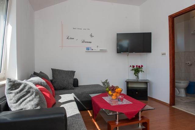 Apartamentele Fila sunt formate din 6 unități, 4 apartamente cu o cameră și două garsoniere. Apartamentele sunt situate într-o locație liniștită, la aproximativ 30 de metri de plaja Mulo-Vrsi, la 250 de metri de centrul orașului Mulo-Vrsi, unde există numeroase restaurante, magazine de suveniruri și magazine. În imediata vecinătate, la aproximativ 50 de metri distanță, se află: două cafenele și un restaurant fast-food. Plaja Mulo-Vrsi oferă diverse activități sportive, cum ar fi: kitesurfing, windsurfing, închiriere de bărci, umbrele și șezlonguri.