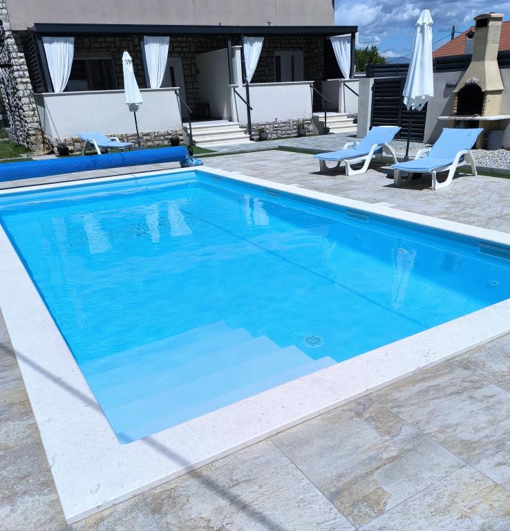 Piscină încălzită (închisă 15.10.2025 - 1.5.2026) Bine ați venit la Royal Place Apartments, apartamente situate în fermecătorul oraș regal Nin, la doar 16 km de orașul istoric Zadar. Oferim două apartamente luxoase. Un dormitor (în curând 2026, cameră de familie) și două dormitoare la parter, într-o locație liniștită, la doar 200 de metri de promenada pitorească de pe malul mării, restaurantele locale și centrul orașului. Plaja este la 900 de metri distanță. Etajul spațios al clădirii include o curte interioară liniștită, împrejmuită, plină de plante mediteraneene luxuriante. În plus, există o piscină cu apă sărată încălzită, o zonă de plajă cu șezlonguri și umbrele, un duș exterior, un grătar. Etajul superior al clădirii nu are acces.
