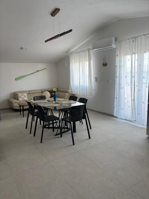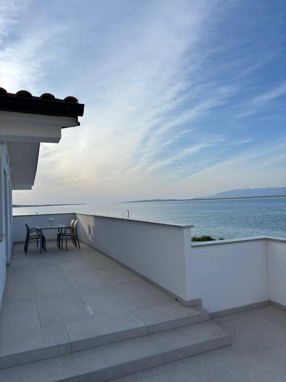 Apartamente spațioase, recent renovate și complet echipate, situate la doar 15 metri de mare. Apartamentul 1 se află la parter (100 m² inclusiv terasa) și dispune de o grădină privată, în timp ce Apartamentul 2 este situat la etaj (70 m² cu un balcon de 50 m²), fiind ideale pentru familii și grupuri de prieteni. Fiecare apartament are două dormitoare, un living, o bucătărie și o baie. Oaspeții beneficiază de aer condiționat, TV și Wi-Fi. Proprietatea oferă, de asemenea, parcare privată și duș exterior. Un punct de atracție special îl reprezintă apusurile magice și priveliștea spectaculoasă asupra Munților Velebit.