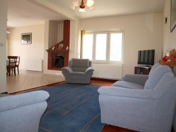 Relaxant penthouse in Nin la 4 minute cu mașina de centru. Casa are 170 m2, cu o grădină de 1000 m2. În subsol există o sală de garaj și spălătorie. La primul etaj este un living mare cu șemineu și o bucătărie spațioasă, cu iesire pe terasa. La primul etaj se afla si toaleta. La etajul al doilea sunt 3 dormitoare spațioase, dintre care două au balcoane. În două dormitoare există două paturi de o persoană, în timp ce casele rămase un pat dublu. La etajul al doilea există o baie cu WC. In casa sunt disponibile 2 aer condiționat și acces gratuit la internet. În grădină există o livadă de măslini, flori și peluză. Întreaga grădină este împrejmuită, deci este potrivit pentru familiile cu copii, deoarece are o mulțime de spațiu pentru a juca. Gradina este, de asemenea, grătar disponibil. Casa este ideal pentru o vacanță relaxantă, fără stresul blocajele în trafic. Este înconjurat de natură. Casa este posibil de a parca doua masini.