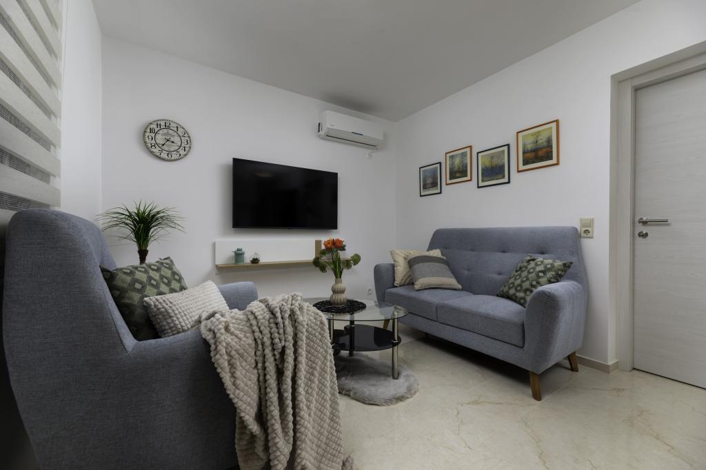 Situat într-o zonă liniștită a orașului Njivice, pe insula Krk, acest apartament recent renovat, situat la parter, oferă combinația ideală de confort și o atmosferă mediteraneană relaxantă. Este perfect pentru familii sau grupuri mai mici care doresc să se bucure de o vacanță lângă mare, cu liniște și intimitate. Apartamentul are două dormitoare spațioase, o baie modernă și o toaletă separată suplimentară. Unul dintre dormitoare are o cameră mică cu un pat suplimentar. O bucătărie complet utilată și un living confortabil oferă tot ce este necesar pentru un sejur relaxant. Un avantaj special este terasa acoperită, înconjurată de verdeață, ideală pentru cafeaua de dimineață, o masă în familie sau relaxare seara. Oaspeții au acces la aer condiționat, Wi-Fi, parcare privată, duș exterior și grătar. Plaja este la doar 600 de metri distanță, iar în apropiere există restaurante, magazine și toate facilitățile necesare pentru o vacanță fără griji. Bucurați-vă de marea cristalină, plimbări de-a lungul coastei și atmosfera autentică a insulei, care oferă echilibrul perfect între odihnă și activitate.