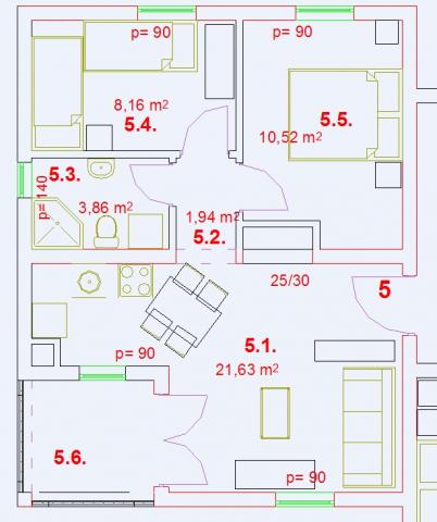 Apartament pentru patru persoane, cu două paturi suplimentare (0 m2)
