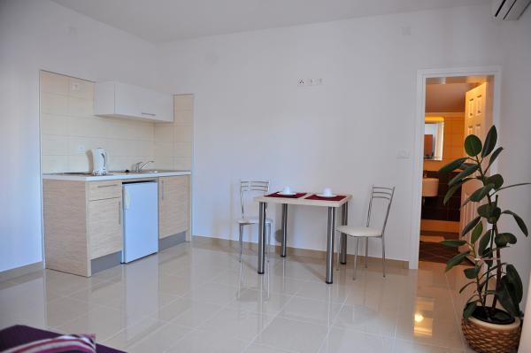 Taxa de rezidenta este inclusa in pret.- Apartamentele studio sunt dotate cu aer condiționat și au semnale Wi-Fi disponibile. Acestea sunt situate în apropiere de centrul orașului Novalja și departe de mare de 100 m. Într-o cameră este dotată cu bucătărie și pat dublu (pat dublu). Fiecare apartament studio are baie cu toaletă cu duș. În imediata vecinătate există o plajă de oraș și restaurante. Fiecare apartament studio are un loc de parcare securizat. Stația de autobuz din oraș este la 200 de metri distanță. - Bungaloul este o unitate separată sau o casă mică lângă centru și cu vedere la mare. Are terasă proprie și spațiu de parcare. Bungaloul este dotat cu aer condiționat și un semnal Wifi este disponibil. Cazare într-un bungalou este potrivit pentru trei persoane.