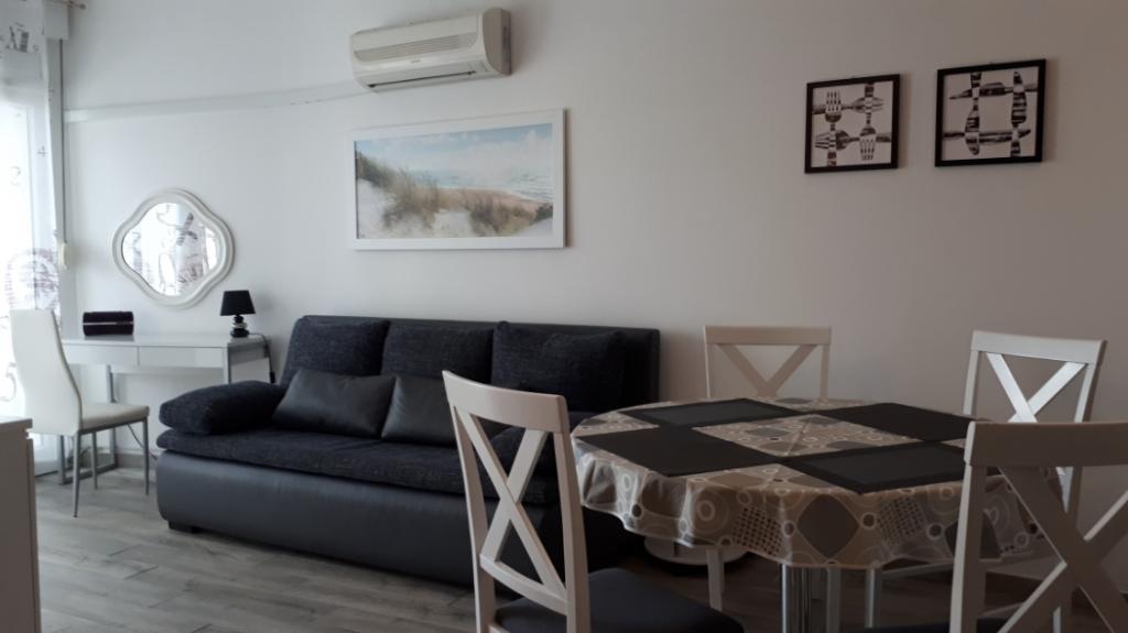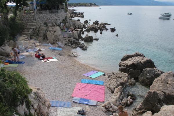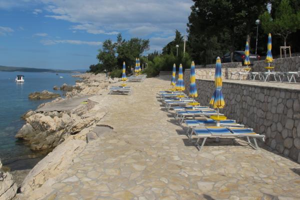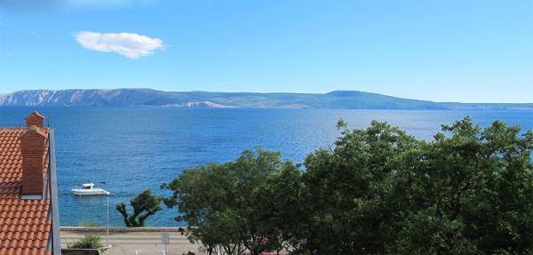Apartament recent renovat, la 50 de metri de mare, într-o zonă liniștită din Novi Vinodolski. Apartamentul este format dintr-un dormitor dublu cu TV, living cu pat suplimentar pentru două persoane și TV. Bucătărie complet echipată cu zonă de luat masa: aragaz electric, plită, cuptor, cuptor cu microunde, frigider cu congelator, mașină de spălat vase, ceainic și prăjitor de pâine. Baie - duș, chiuvetă, WC, bideu, mașină de spălat și uscător de păr. Balcon cu vedere la mare. Apartamentul este inconjurat de verdeata, are o curte cu un gratar comun. Aproape de plaje stancoase, de prundis și de beton, la doar câteva minute de mers pe jos. Există un spațiu de parcare în fața clădirii.