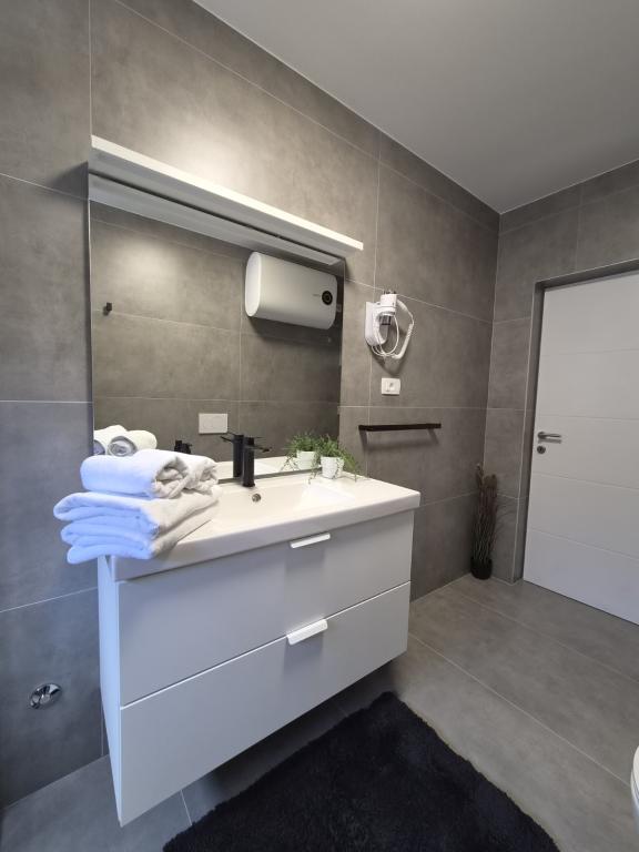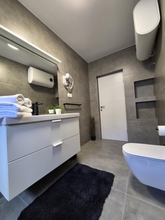 Apartamentele Motar de 4 stele sunt situate în orașul Novi Vinodolski, situat în Golful Kvarner, la doar 350 m de plajă. Proprietatea în sine are două apartamente ideale pentru vacanțe și petreceri de vară. Apartamentul mai mare (A4) are o suprafață de 80 m2 și are două dormitoare cu un pat dublu mare, o bucătărie, un living, două băi cu uscător de păr și o terasă de 30 m2 cu o piscină mare cu hidromasaj cu vedere la mare și insule, în timp ce apartamentul mai mic (A2) are un dormitor cu un pat dublu mare, un living, o bucătărie și o baie cu uscător de păr. Apartamentul are o suprafață de 60 m2 și are, de asemenea, o terasă de 30 m2 cu o piscină mare cu hidromasaj cu vedere la grădina amenajată și la peluză. Ambele apartamente au o bucătărie complet utilată cu cuptor, plită, hotă, fierbător, Nespresso, aparat de cafea cu filtru, mașină de spălat vase, frigider și cuptor cu microunde. Ambele apartamente au seif.