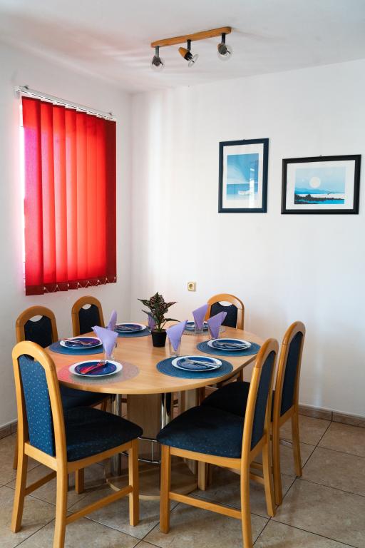 Casa este situata intr-o zona linistita a orasului, la o distanta de 240 de metri de mare si la mai putin de 5 minute de mers pe jos de centrul orasului. Apartamentele sunt dotate cu toate echipamentele și aparatele necesare pentru a asigura oaspeților noștri o experiență de vacanță confortabilă și plăcută în reședința noastră. Toate apartamentele sunt dotate cu aer condiționat și au propria lor rețea Wi-Fi. Oaspeții au la dispoziție parcare direct în fața casei și pot folosi gratuit grătarul de familie dacă doresc.