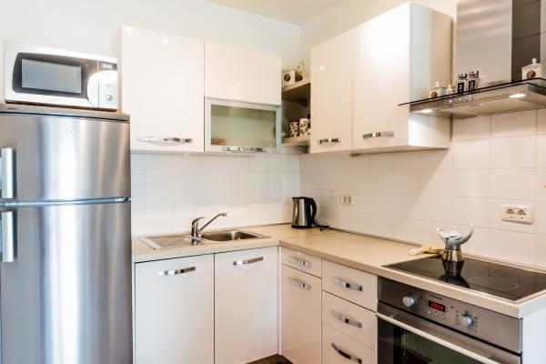 Apartament modern mobilat situat într-o suburbie liniștită, aproape de mare. Apartamentul este format din 2 dormitoare, bucatarie, baie, living, sala de mese (cu 2 paturi suplimentare), precum și un balcon cu vedere la mare. Apartamentul dispune de un loc de parcare împrejmuită. Cladirea care adaposteste aplicația are o curte frumos și partea din față a clădirii este de tribunal multi-scop și un mic parc pentru o sală de jocuri și copii.