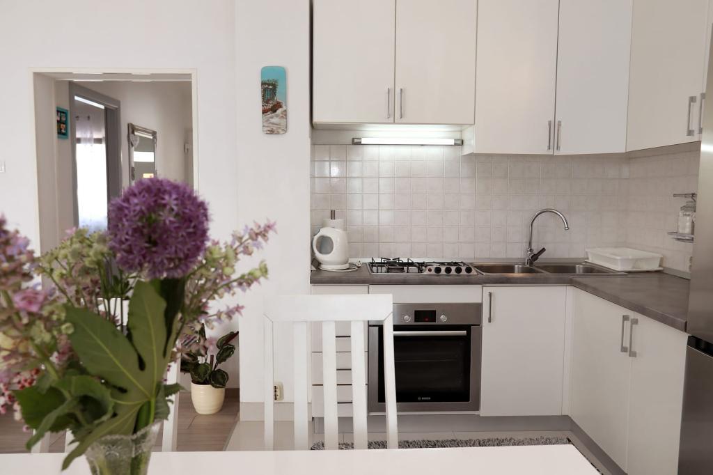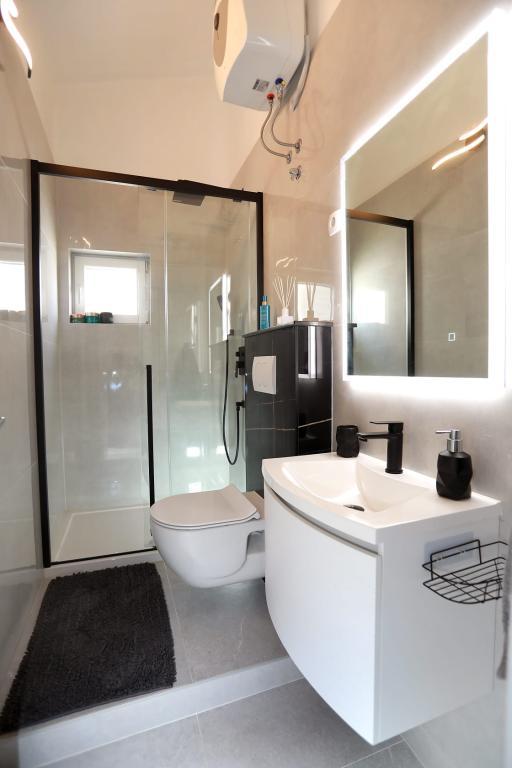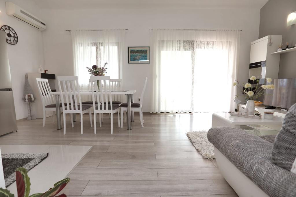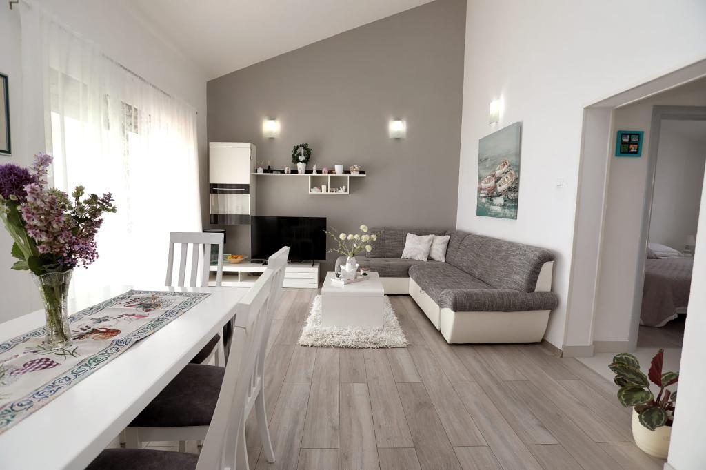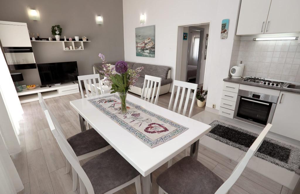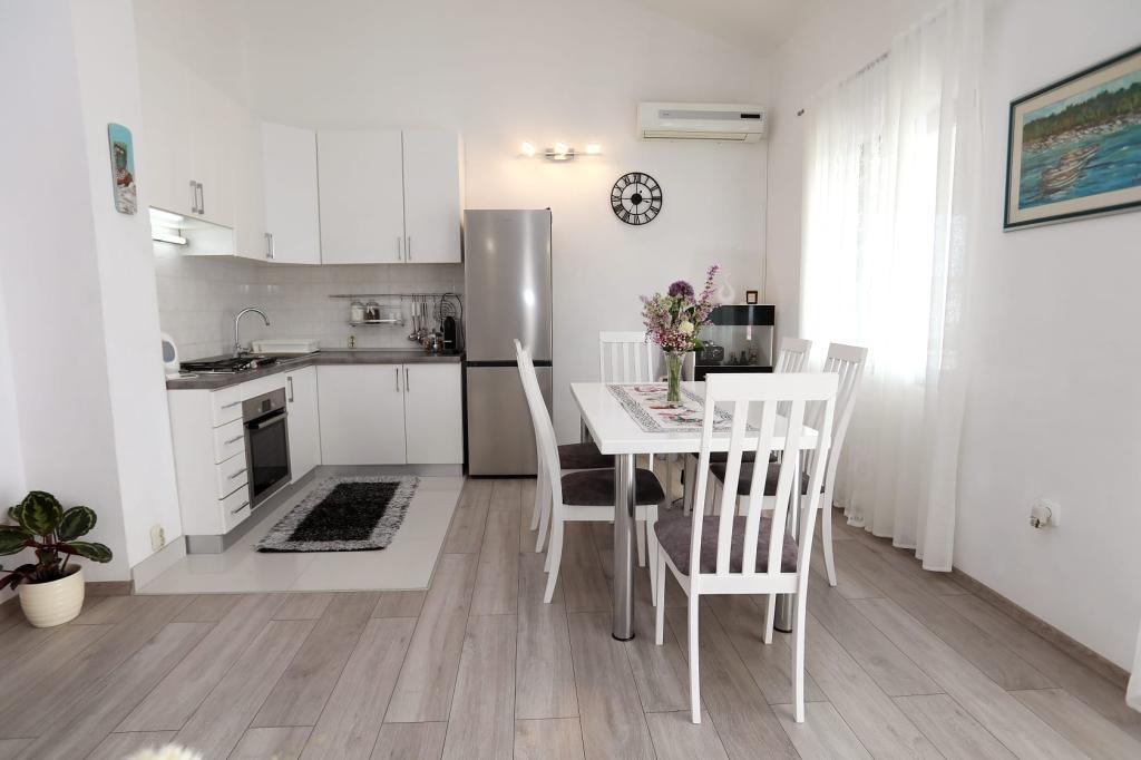 Apartamentul Katija este situat în Okrug Gornji, la doar 30 m de malul mării. Apartamentul nostru oferă o combinație perfectă de liniște, confort și o priveliște încântătoare asupra numeroaselor insule dalmate. Este o destinație ideală pentru familii, cupluri și oricine caută relaxare într-un mediu natural, departe de aglomerație, dar aproape de toate facilitățile necesare. Savurați cafeaua de dimineață sau apusul de seară pe terasa privată, unde vă așteaptă o priveliște uluitoare. La doar 5 minute de mers pe jos se află o plajă bine întreținută, potrivită pentru copii, cu apă puțin adâncă și umbră naturală - ideală pentru o vacanță în familie. Principalele caracteristici ale apartamentului: apropierea de mare, terasă cu o priveliște frumoasă, bucătărie complet utilată cu zonă de luat masa și living, două dormitoare cu paturi duble, baie cu duș și facilități de bază, Wi-Fi gratuit, aer condiționat, TV, parcare gratuită. Indiferent dacă plănuiți o vacanță activă sau pur și simplu doriți să vă bucurați de soare și mare, apartamentul nostru din cartierul Gornji vă oferă tot ce aveți nevoie pentru un sejur de neuitat.