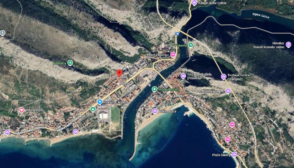 Apartamentul „Piccolo” este situat la 5-10 minute de mers pe jos de orașul vechi Omiš și la aproximativ 5-7 minute de mers pe jos de plaja cu nisip (Velika plaža). Are o suprafață de 25 m² și este format dintr-un living cu zonă de luat masa și o bucătărie mică, un dormitor separat și o baie cu duș și mașină de spălat. În bucătăria bine utilată, oaspeții vor găsi un cuptor cu microunde, frigider, aragaz, aparat de cafea, fierbător și vase. Apartamentul a fost parțial renovat în 2024. Este situat într-o clădire rezidențială, cu intrare separată, printr-o scară către terasa din partea de sud a clădirii. Oaspeții au la dispoziție parcare gratuită, wi-fi, aer condiționat (toate incluse în preț). Tipuri de paturi: 1 pat dublu și o canapea extensibilă. Număr de persoane: 2.