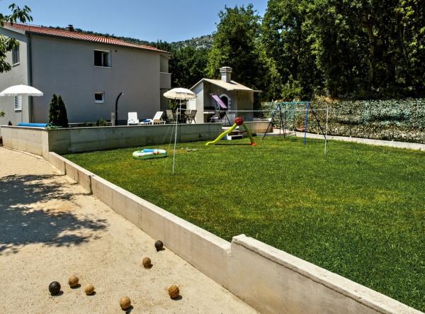 Taxa de rezidenta este inclusa in pret.Oaspetii nostri au o piscină privată, o cameră cu echipamente de fitness, gratar in aer liber, tradițional, loc de joaca pentru bowling și gazon cu leagăn. Sunt de asemenea incluse lenjerii de pat și prosoape. Aceasta este o alegere excelentă pentru familii, aventurieri și grupuri de prieteni, deoarece locul este într-un mediu liniștit și este bine echipat și oferă o mulțime de spațiu, și este în apropierea orașului Omis (5km), River Cetiina unde puteți încerca rafting, linie zip, canyoning, gratuit alpinism sau doar se bucură de frumoasa mediului, care oferă un canion râu. Orașul Split cu vechiul său parte, Palatul UNESCO lui Dioclețian pe care le vedeți este la numai 21 km, sau o jumătate de oră, acest lucru se poate găsi întotdeauna ceva pentru fiecare gust.