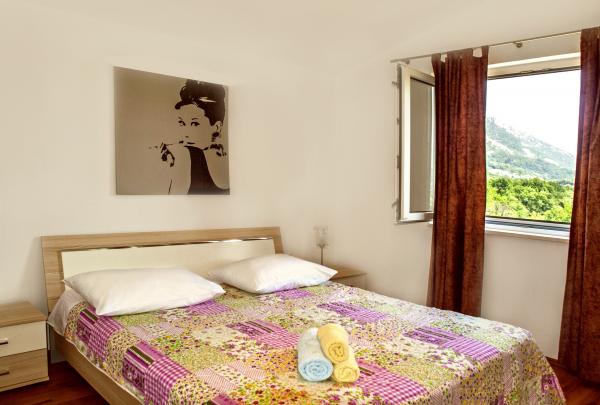 Vila Antoni este situat în satul liniștit Gata în zona naturală, rural și de munte numai 10 minute de plajă și un mic oraș mediteranean de Omis. Proprietatea include doua apartamente pe care le oferim ca o singură unitate, cu o piscină privată. Cazarea este aranjat pentru un maxim de 10 persoane (6 4) Este o casa moderna, recent construite și bine echipate, iar apartamentul este la primul etaj și singularul este oferit. Pentru a facilita înțelegerea de organizare am spațiale Apartamentul nr 2 și nr Apartament 1: Apartamentul nr 2 (4 2 persoane) are două dormitoare (o camera cu un pat dublu și unul cu 2 paturi), living cu o canapea extensibilă, bucătărie și baie. Apartament No. 1 (2 2 persoane) are un dormitor cu un pat dublu, un living cu o canapea extensibilă și o bucătărie și o baie. La parter este o cameră cu echipamente de fitness cu baie, de asemenea, pentru oaspeți. Apartamentele au doua balcoane si o terasa, si o piscină privată în aer liber, care are o pătură termică pentru a menține o temperatură confortabilă.