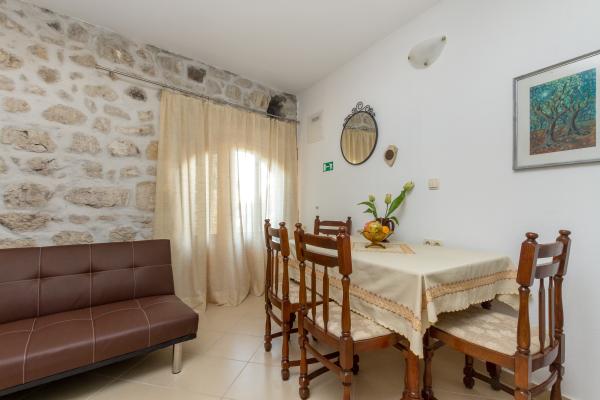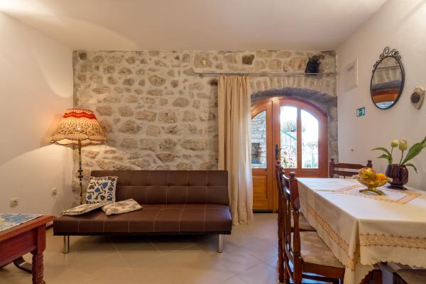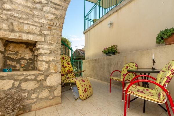 Casă de piatră construită în 1892 complet renovat și adaptat la viața modernă. Acesta este situat la 357 m deasupra nivelului mării. Terasa oferă vederi superbe la mare și insule. Casa este dotată cu aproape toate instrumentele necesare pentru un sejur confortabil și plăcut. Oricine poate găsi propriul lor colț confortabil, a fost pe una dintre terasele care este 4 și promatati apus de soare de neuitat. Copiii au un colț al casei pentru a juca cu ei fericit mai ales. După o excursie de o zi pentru pregătirea mesei pe gratar cu un vin bun dalmate devine seara de neuitat. Ea se întinde pe 3 etaje. La etajul I este o camera de zi cu bucatarie, sala de mese complet utilată și baie cu duș. La primul etaj sunt patru dormitoare. La parter este o baie cu duș, și o mașină de spălat. La parter este un apartament separat, cu o bucătărie, masă și scaune de mese complet utilată și o baie cu duș. Dormitorul este separat de zona de living. In fata este o terasa placuta echipată cu masă și scaune și un hamac.