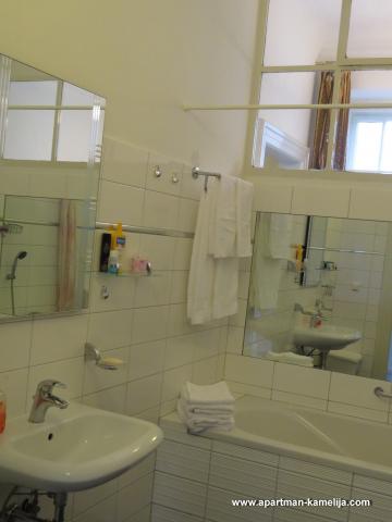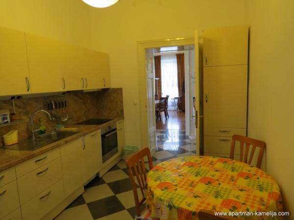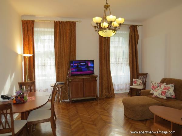Stimați vizitatori. Va oferim un apartament bine echipat (100 m2), care este situat la primul etaj al Villa Emilia într-o stradă liniștită, în centrul orașului Opatija, la doar 100 de metri de mare. tavane înalte. Ea are o vedere frumoasă, balcon cu marchiză și mobilier de grădină. Acesta este conceput pentru a rămâne 2-6 adulți cu copii. Apartamentul are 100 m2, 2 dormitoare, living, TV (Smart TV) și TV prin satelit, 2 bai (cu cada si dus), Wi-Fi și Internet. Acesta este echipat cu: mașină de spălat, mașină de spălat vase, ceainic electric, aragaz, cuptor, frigider mare cu congelator, bucătărie modernă, cuptor cu microunde, uscător de păr, set de călcat, aer condiționat, încălzire prin pardoseală, paturi, set pentru copii, lenjerie de pat, prosoape, ustensile de bucătărie și de gătit. In fata vilei dispune de o grădină. Apartamentul este poarta de securitate securizata, are, de asemenea, un seif. Parcarea este în curte. Bine ai venit! Doar să ia lucrurile personale și să vină la noi în vacanță! Noi va oferim doar ceea ce ne ne bucura de ea.