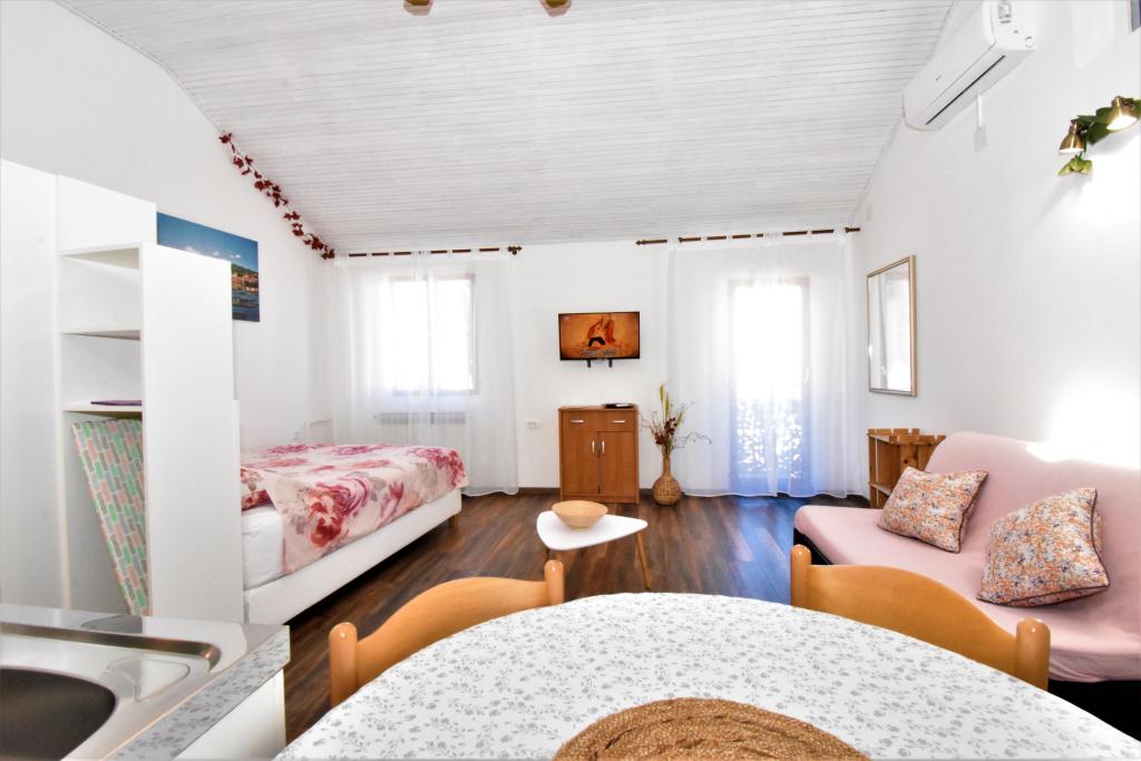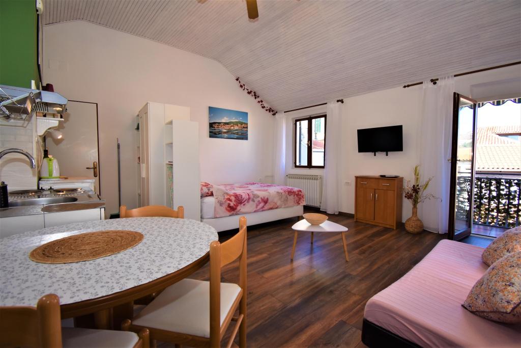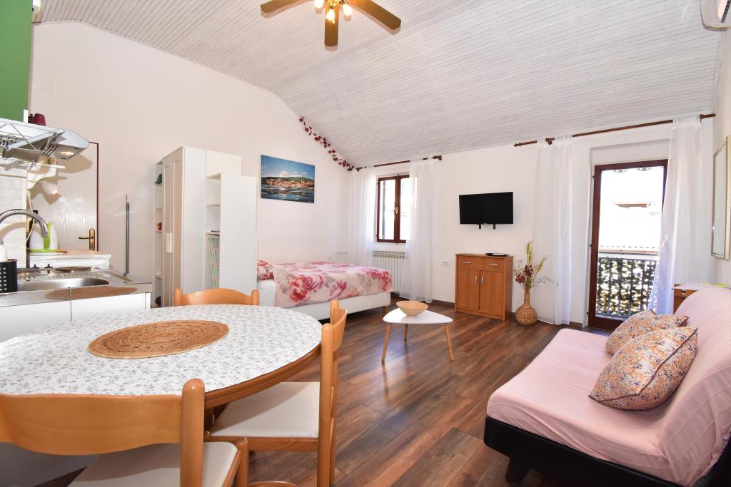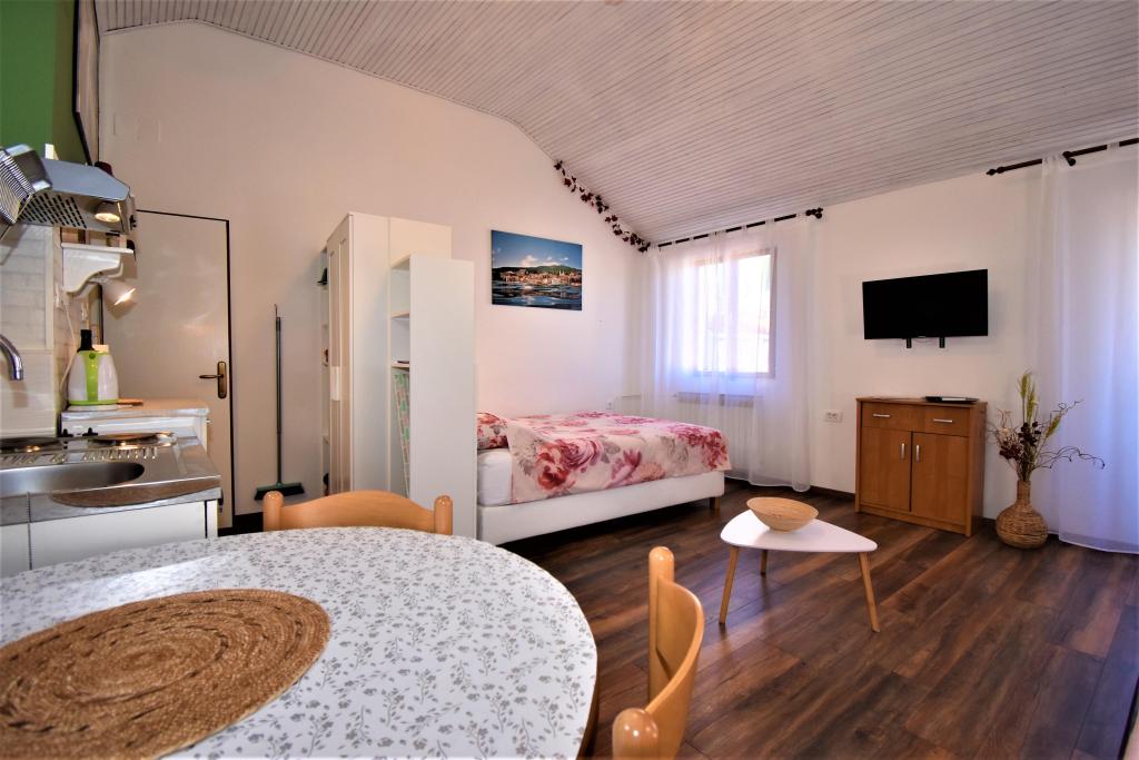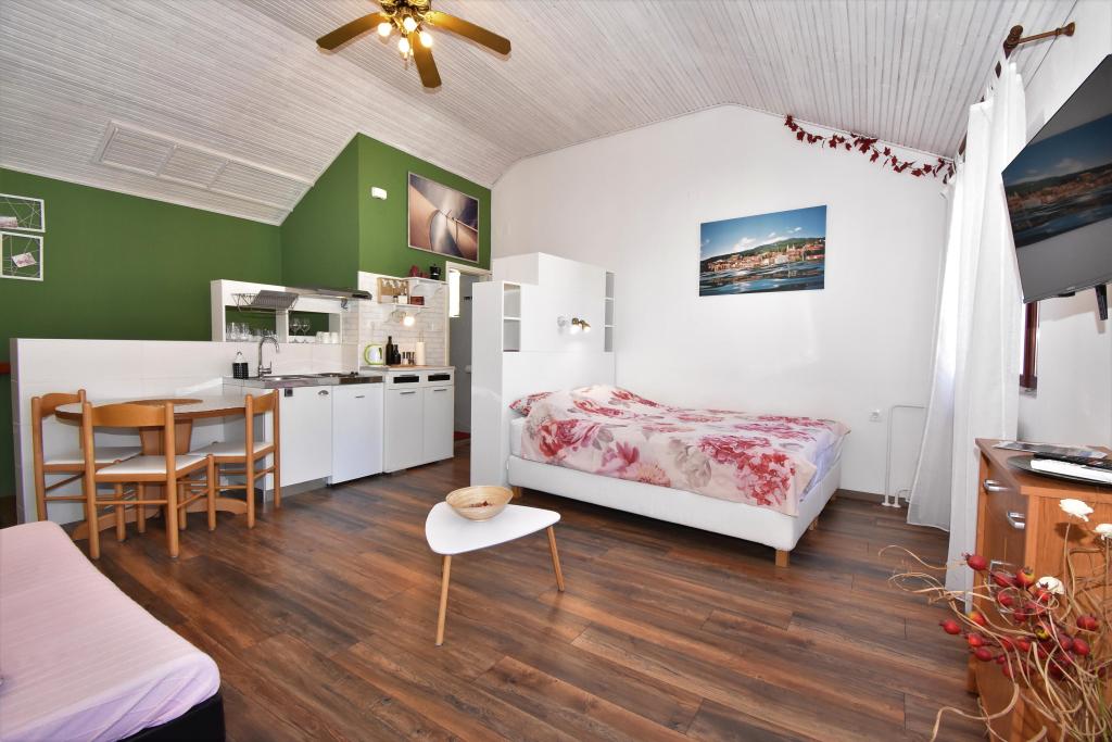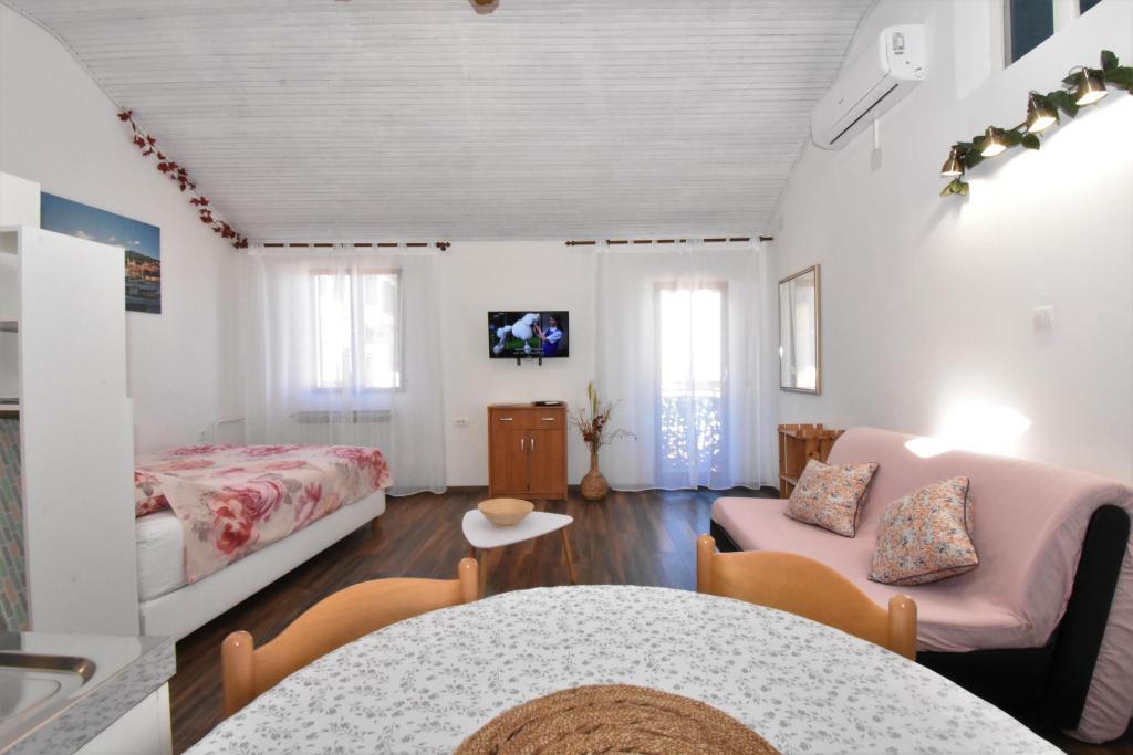 Două apartamente studio, fiecare cu un pat dublu și un pat suplimentar, sunt situate în Volosko, o zonă liniștită a Opatija, un fost sat de pescari. Sunt la doar 50 m de mare. În imediata lor împrejurimi se află magazine alimentare și câteva dintre cele mai bune restaurante de pe Riviera Opatija! Studio+1 ID:2710 constă dintr-o cameră cu un pat dublu și un pat suplimentar (o canapea extensibilă), o chicinetă - parte a camerei, o baie (duș/toaletă) și un balcon cu vedere la mare. Studio+1 ID:2711 are tot ce are Studio+1 ID:2710, cu excepția balconului și vedere la mare. In loc de balcon, Apartamentul Studio 2 are iesire pe terasa (fara vedere la mare).