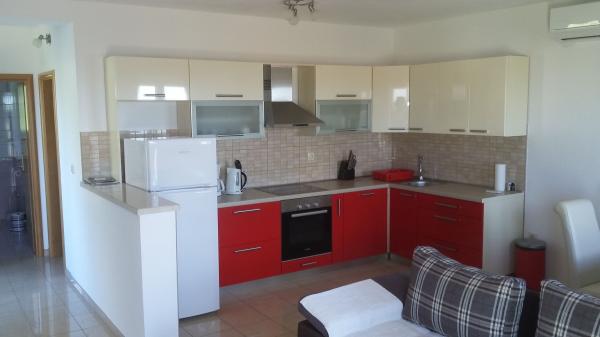 Apartamentul este situat într-o casă familială într-o parte foarte liniștită a orașului, în apropiere de centru și plajă. Apartamentul este mobilat nou și dotate cu TV, aer condiționat și internet. Este potrivit pentru familiile cu copii.