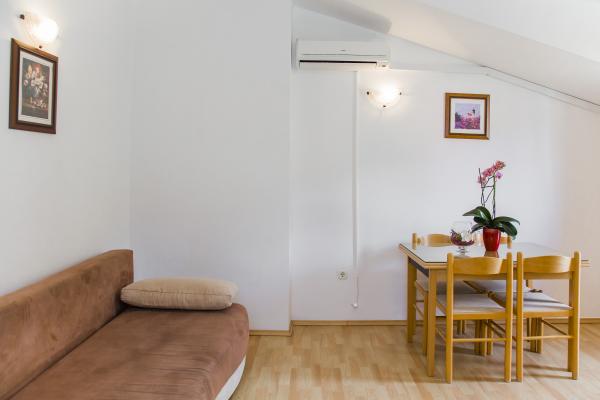 Vila Mirela este situat în Orebic pe peninsula Peljesac. Situat într-o locație liniștită, în apropiere de Trstenica Main Beach. Vila oferă 7 apartamente. De asemenea, există o mulțime mare de parcare, o gradina mare cu gazon, care este potrivit pentru a juca copii, gratar si semineu - care pot fi utilizate de către oaspeți. Villa nu este pe drumul principal, care este ideal pentru copii mici și alte persoane care au nevoie de o vacanță relaxantă și liniștită. Oaspeții nenumărate care au trecut prin Villa noastră și care are placerea de a reveni sunt motivul pentru care putem spune că turismul în tradiția familiei noastre și de calitate. Ascultarea dorințele oaspeților, cu investiții constante, am creat o cazare confortabilă, care poate fi savurat pe toți cei care ne viziteaza. Ca gazde, fericit să vorbească și să dea informațiile necesare. Ne străduim să vă face șederea cât mai plăcută și vrem să ne întoarcem din nou și ne recomanda prietenilor lor. Apartament A8 este situat în micul sat de Trstenik - la 20 km de Orebic - acest apartament este excelent pentru cei care iubesc liniște și pace. .