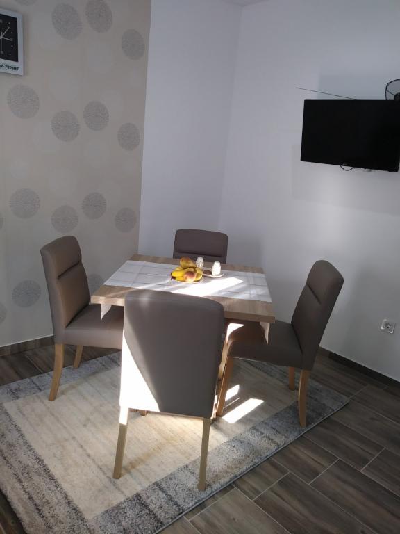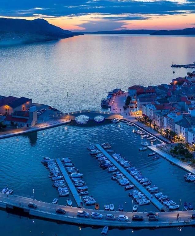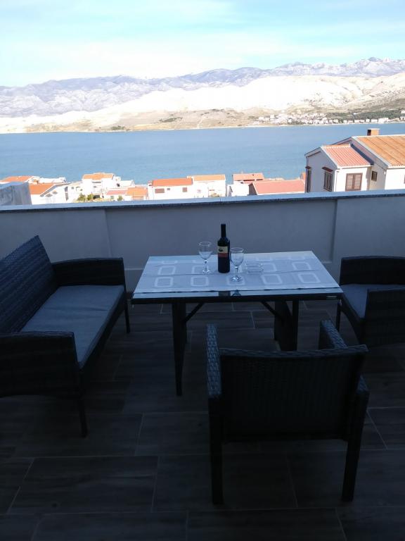 Apartament mobilat complet și modern într-o zonă liniștită a orașului Pag. Vedere frumoasă de pe terasa mare pe mare și Velebit. Bucătăria este la fel de modernă ca întregul apartament. Pretul include aer conditionat, wifi, parcare, masina de spalat, gratar in curte si taxa de turism. Plaja este la 250m distanță, iar centrul orașului la 1500m.