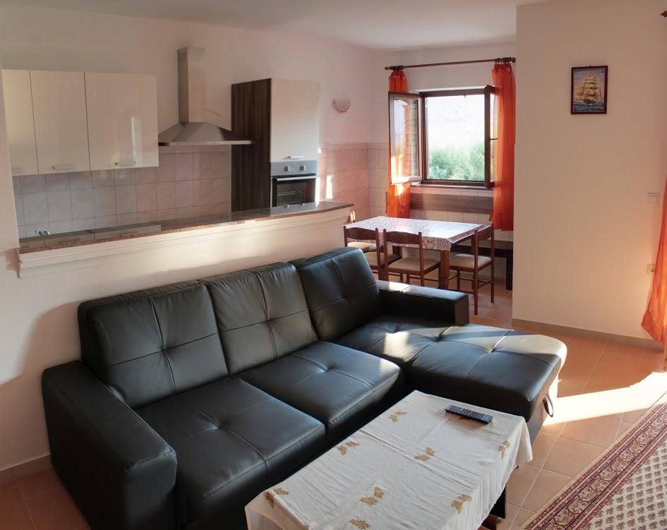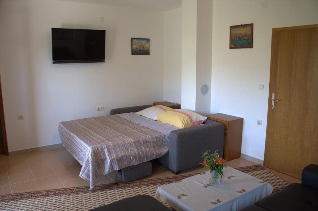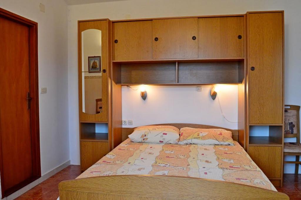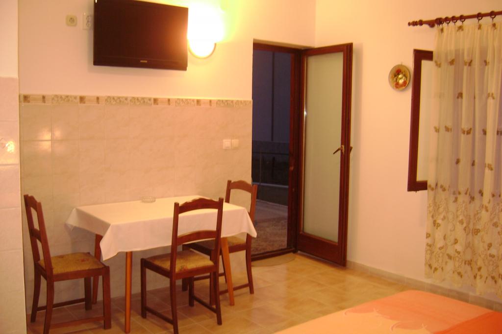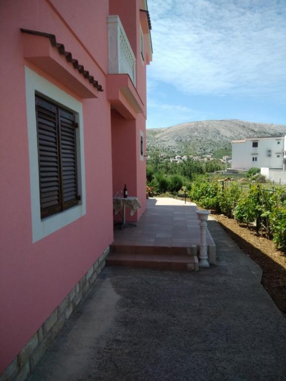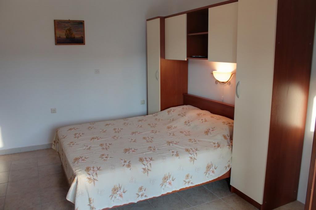 Trei apartamente studio: camere cu bucătărie, baie și un apartament mare pentru 4 persoane (2 + 2) sunt situate în orașul Pag. Două apartamente studio sunt situate la parter și un apartament studio la primul etaj al unei case mari de familie. Situat la 10 minute de mers pe jos de piața principală a orașului și la cincisprezece minute de plaja principală a orașului. Apartamentele sunt situate într-un loc foarte liniștit și liniștit, înconjurat de grădini, natură și verdeață potrivite pentru oaspeții care doresc liniște și liniște. Apartamentele au o suprafață de 30 de metri pătrați pentru două persoane, au un dormitor, bucătărie și baie cu duș, în fața intrării în apartament sunt terase mici. Apartamentele sunt dotate cu TV, satelit și conexiune la internet, apartamentul de la primul etaj are aer condiționat. La parterul unei case mari de familie există un apartament de 60 de metri pătrați cu un dormitor, bucătărie mare, living mare cu pat dublu pentru patru persoane (2 + 2). În fața apartamentului este o mică terasă.