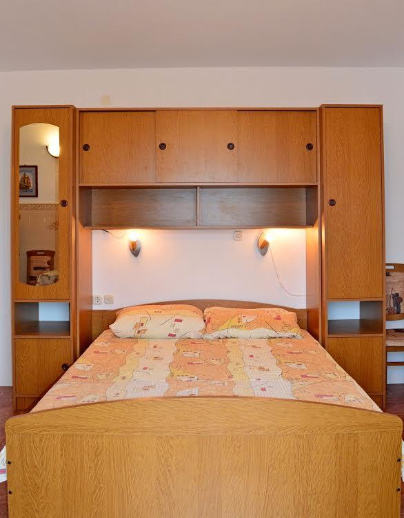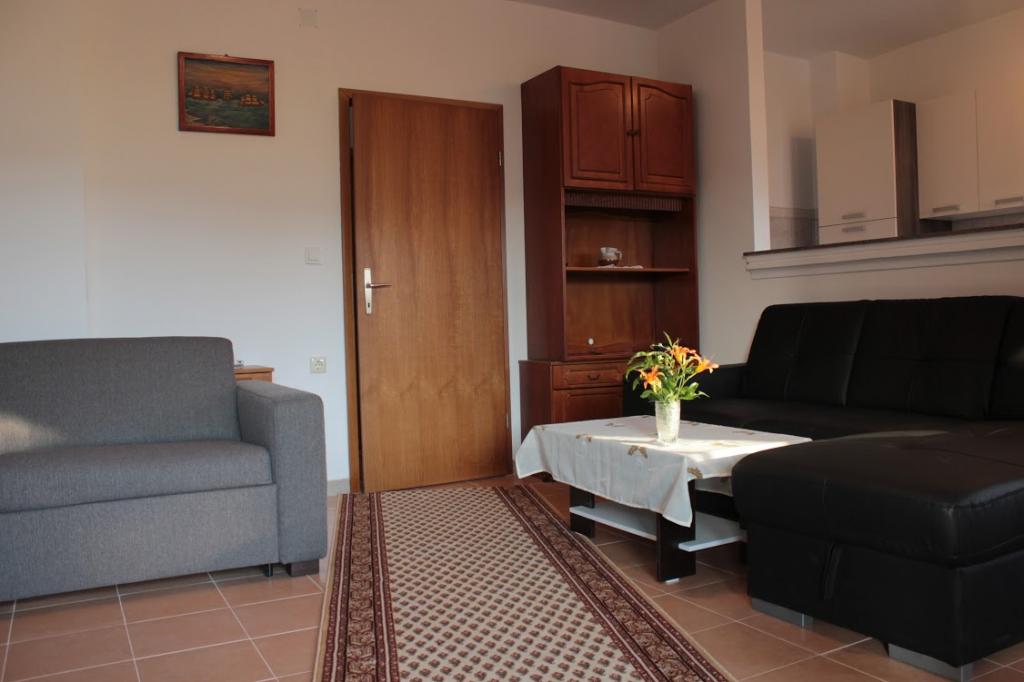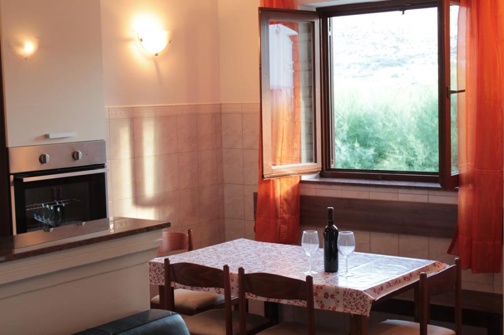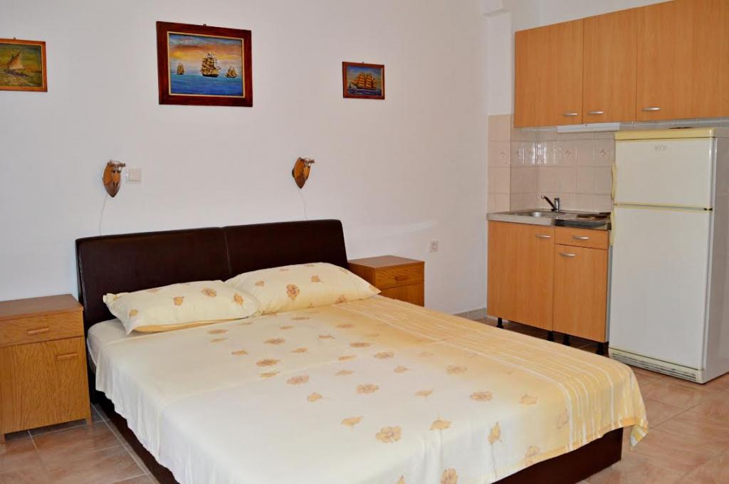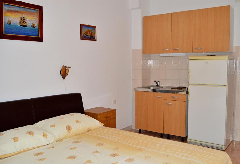 Trei apartamente studio: camere cu bucătărie, baie și un apartament mare pentru 4 persoane (2 + 2) sunt situate în orașul Pag. Două apartamente studio sunt situate la parter și un apartament studio la primul etaj al unei case mari de familie. Situat la 10 minute de mers pe jos de piața principală a orașului și la cincisprezece minute de plaja principală a orașului. Apartamentele sunt situate într-un loc foarte liniștit și liniștit, înconjurat de grădini, natură și verdeață potrivite pentru oaspeții care doresc liniște și liniște. Apartamentele au o suprafață de 30 de metri pătrați pentru două persoane, au un dormitor, bucătărie și baie cu duș, în fața intrării în apartament sunt terase mici. Apartamentele sunt dotate cu TV, satelit și conexiune la internet, apartamentul de la primul etaj are aer condiționat. La parterul unei case mari de familie există un apartament de 60 de metri pătrați cu un dormitor, bucătărie mare, living mare cu pat dublu pentru patru persoane (2 + 2). În fața apartamentului este o mică terasă.