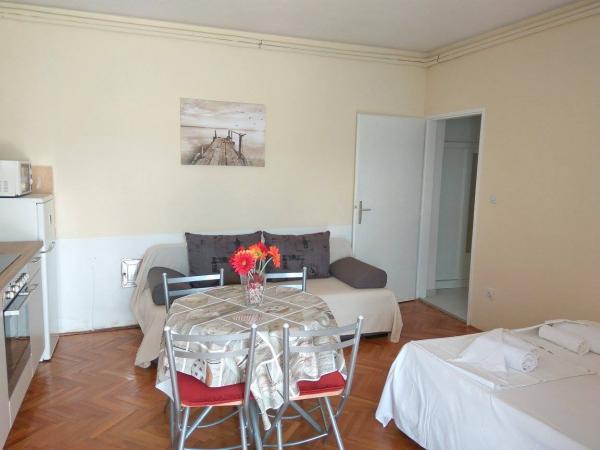 Taxa de rezidenta nu este inclusa in pret.Plaje: Prima plajă este la 200 m distanță. Plaja este cu pietriș și nisip, cu surse de apă potabilă. În casa noastră există mai multe plaje, dar toate sunt similare, perfecte pentru copii (Pag are 20 km de plaja) ... piscina cu toate echipamentele necesare (umbrele, șezlonguri, mese și scaune în grădină, leagăn), două grătare, parcare. Descriere: Toate apartamentele sunt dotate cu TV prin satelit, Wi-Fi, aer condiționat, lenjerie de pat, ustensile de bucătărie, umbrele si mese pe terasa, un frigider și un congelator în bucătărie, cuptor cu microunde, prosoape. .