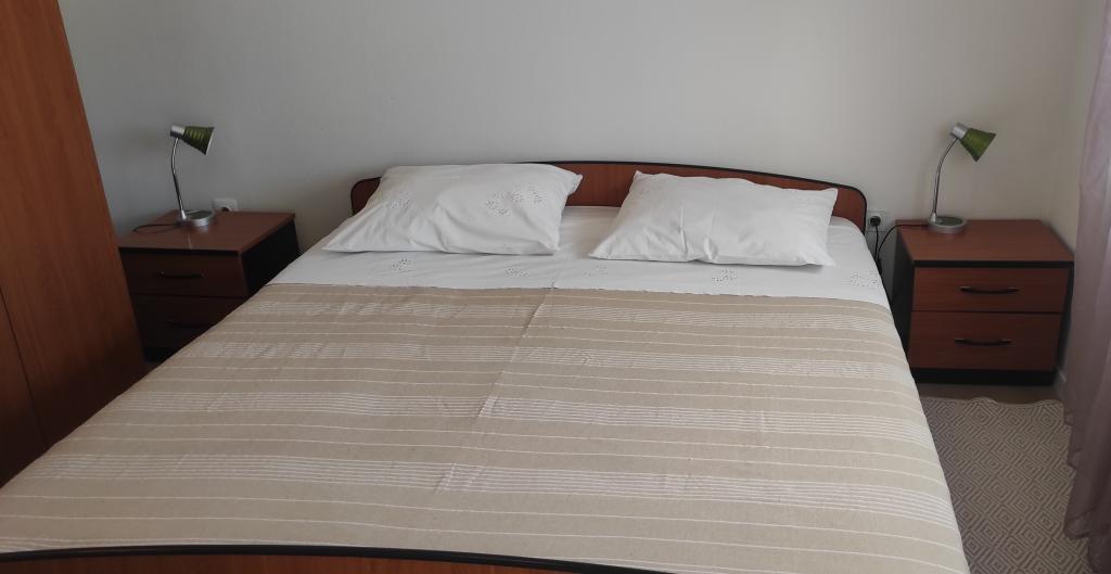 Casa familiala cu doua apartamente complet utilate este situata intr-o zona linistita a orasului, nu departe de centru (2 min de mers pe jos) si plaja (3 min de mers pe jos). Clădirea este înconjurată de o grădină mare, cu multă verdeață și umbră, și este îndepărtată de drum, ceea ce, pe lângă liniște, oferă și un sentiment de siguranță. Există, de asemenea, o parcare privată mare în față și un gazon potrivit pentru joacă. Apartamentul A2+2 este situat la parterul casei si este compus dintr-un dormitor, bucatarie, sufragerie, living cu canapea extensibila si baie. În față există o terasă spațioasă acoperită. Apartamentul A4+2 este situat la primul etaj si este format din doua dormitoare, bucatarie, sufragerie, living cu canapea extensibila si baie. In fata sunt doua terase spatioase acoperite. Toți oaspeții pot folosi grătarul din curte. Gazdele sunt prietenoase și primitoare.