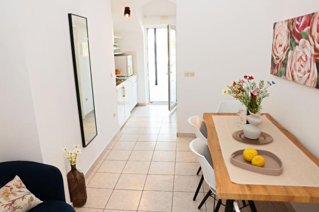 Apartamentele Tri Ferala sunt situate chiar în centrul orașului Pakoštane, la câțiva pași de piața principală, magazine, cafenele, restaurante și piața de pește. Apartamentele sunt situate deasupra celebrului restaurant Tri Ferala, oferind liniște, intimitate și confort, iar terasele au vedere la străzile pitorești din Pakoštane. Plaja Janice, favorită printre localnici și turiști, este la doar 300 de metri. Dacă sunteți în căutarea unei cazări care oferă confort, o locație convenabilă și o experiență dalmată autentică, Apartments Tri Ferala sunt o alegere excelentă. Vă rugăm să trimiteți întrebări exclusiv prin formularul de contact. Lista de prețuri este actualizată și corectă.