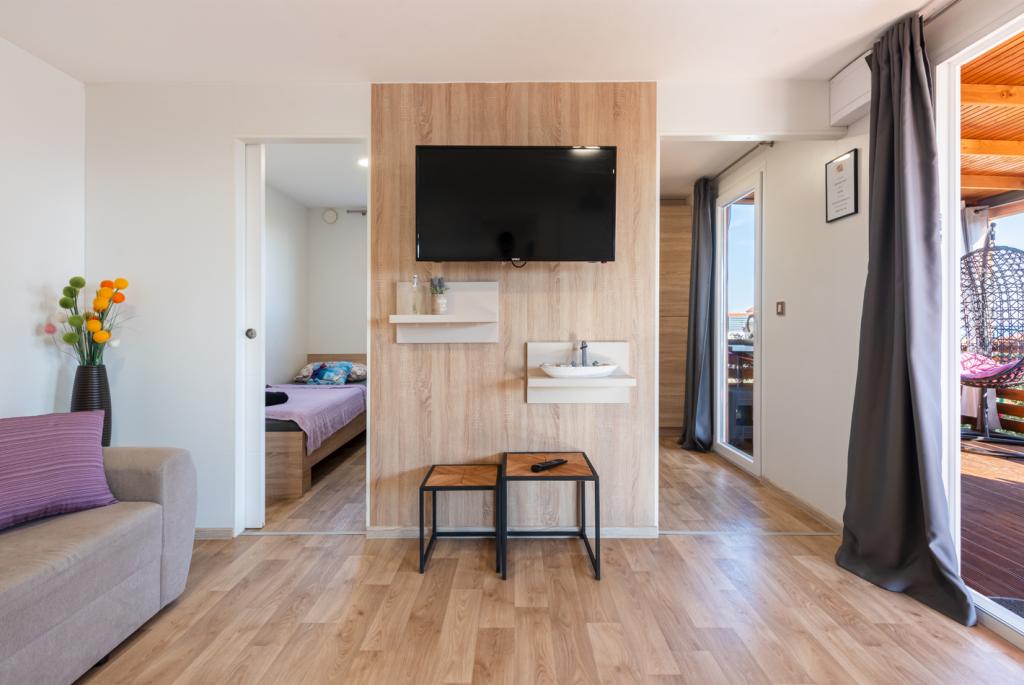 Casa mobilă Seashell este situată în frumosul oraș dalmat Pakoštane. Casa în sine este situată în tabăra privată Mara, la doar 2-3 minute de mers pe jos de plaja principală. Pentru o distracție completă și neîntreruptă a dragilor noștri oaspeți, am pus la dispoziție aer condiționat, WiFi în toate camerele și pe terasă, un grătar mare pe gaz, TV + (HBO), parcare privată pentru două vehicule și o terasă mare (24m2) și acoperită. . Camp Mara este situată în centrul orașului Pakoštane, la numai două sute de metri de malul principal și de plajă. Tabăra și casa sunt situate într-o stradă fără fund într-o locație foarte liniștită și plăcută. CHECK IN: de la 14:00 CHECK OUT: până la 10:00
