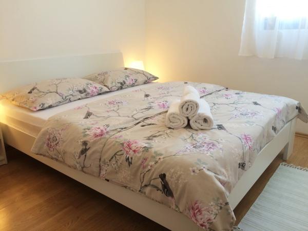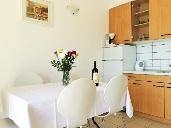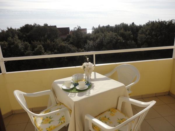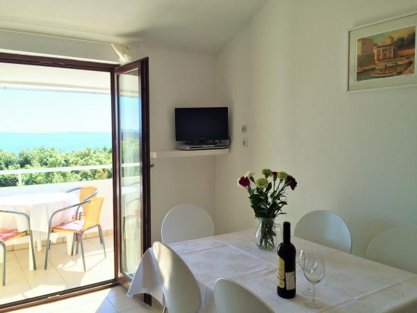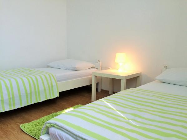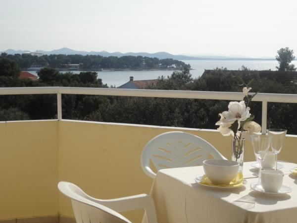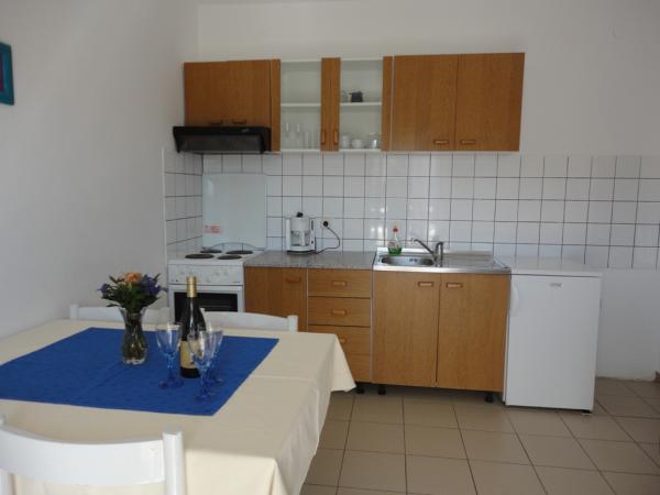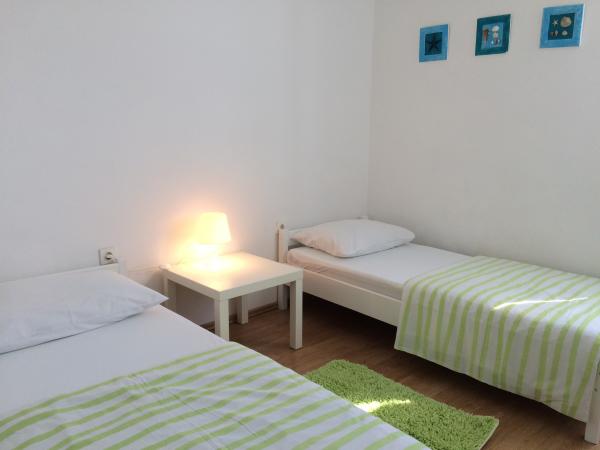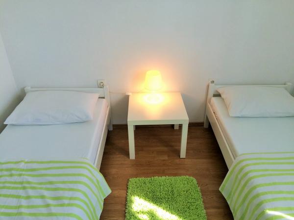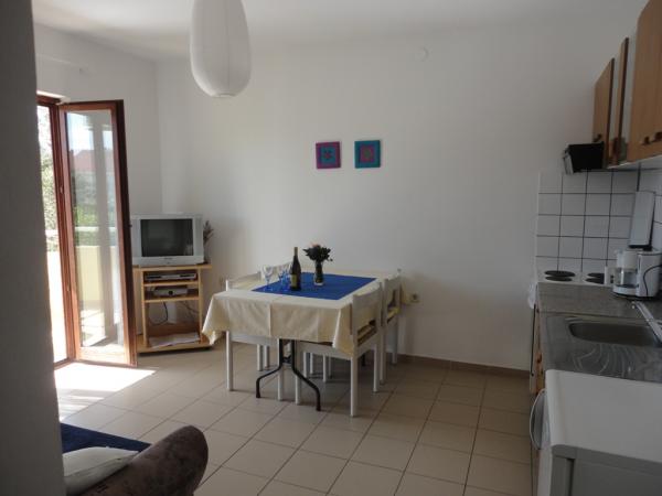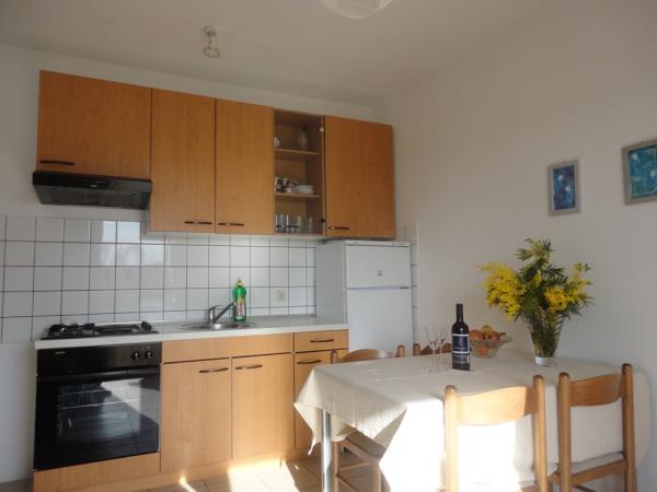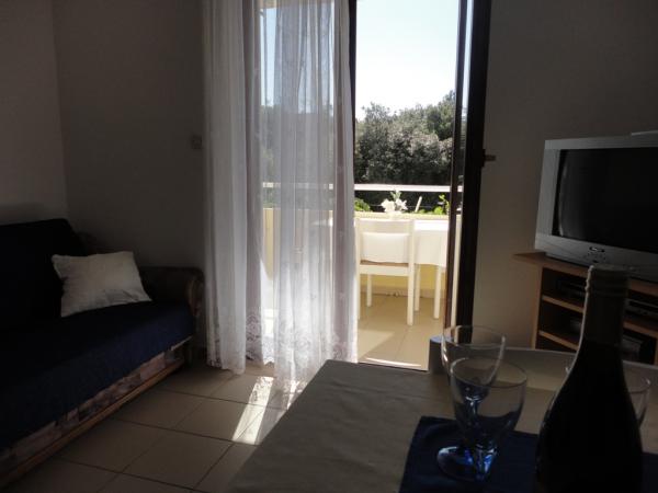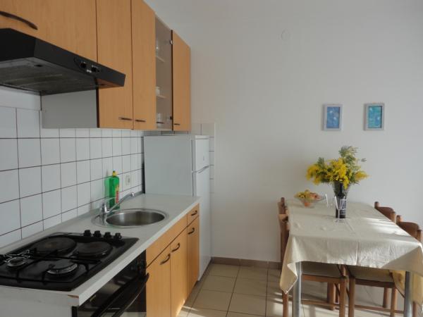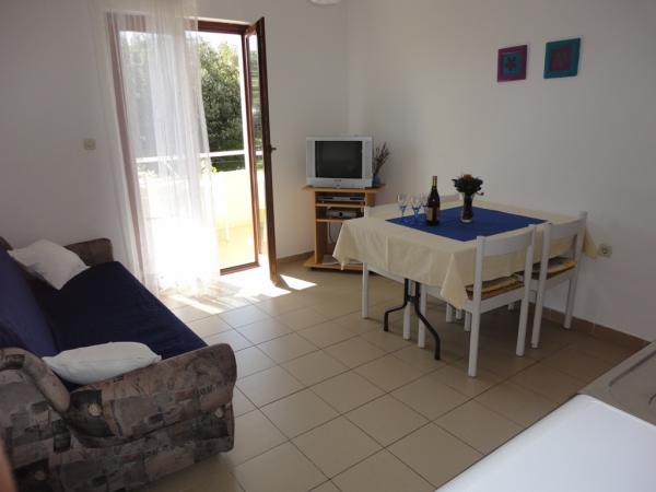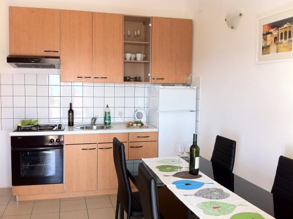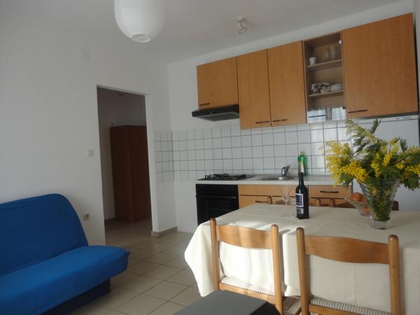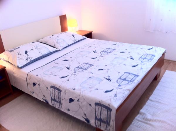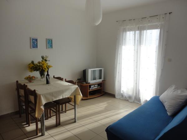 Apartament confortabil, complet mobilat este situat la primul etaj al unei case cu trei etaje într-o zonă liniștită Petricane, departe de la mare 100 m apartament este compus din doua dormitoare, o baie cu duș, bucătărie, cameră de zi și balcon. În apropierea imobilului se află magazine, brutării, restaurante, baruri, un loc de joacă pentru copii.
