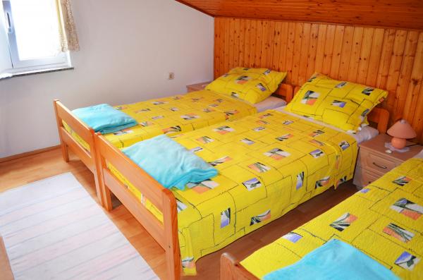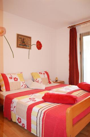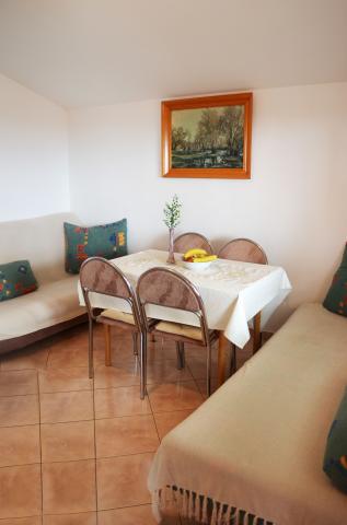 Mediul pașnic și liniștit, departe de facilitățile (restaurante, magazine și plaje). Pe plajă, este necesară pentru a conduce o masina (3-4 min.), Mers pe jos (30 minute). Apartamentul este ideal pentru familiile care doresc intimitate și liniște. Proprietarii sunt prietenos, amabil si foarte prietenos. Apartamente a fost bine echipat în mod adecvat pentru cinci persoane cu posibilitatea schimbării utilizării self-catering și mașină de spălat. Activ are un balcon cu vedere superbă la mare. Facilitatea este, de asemenea, un coș de baschet.
